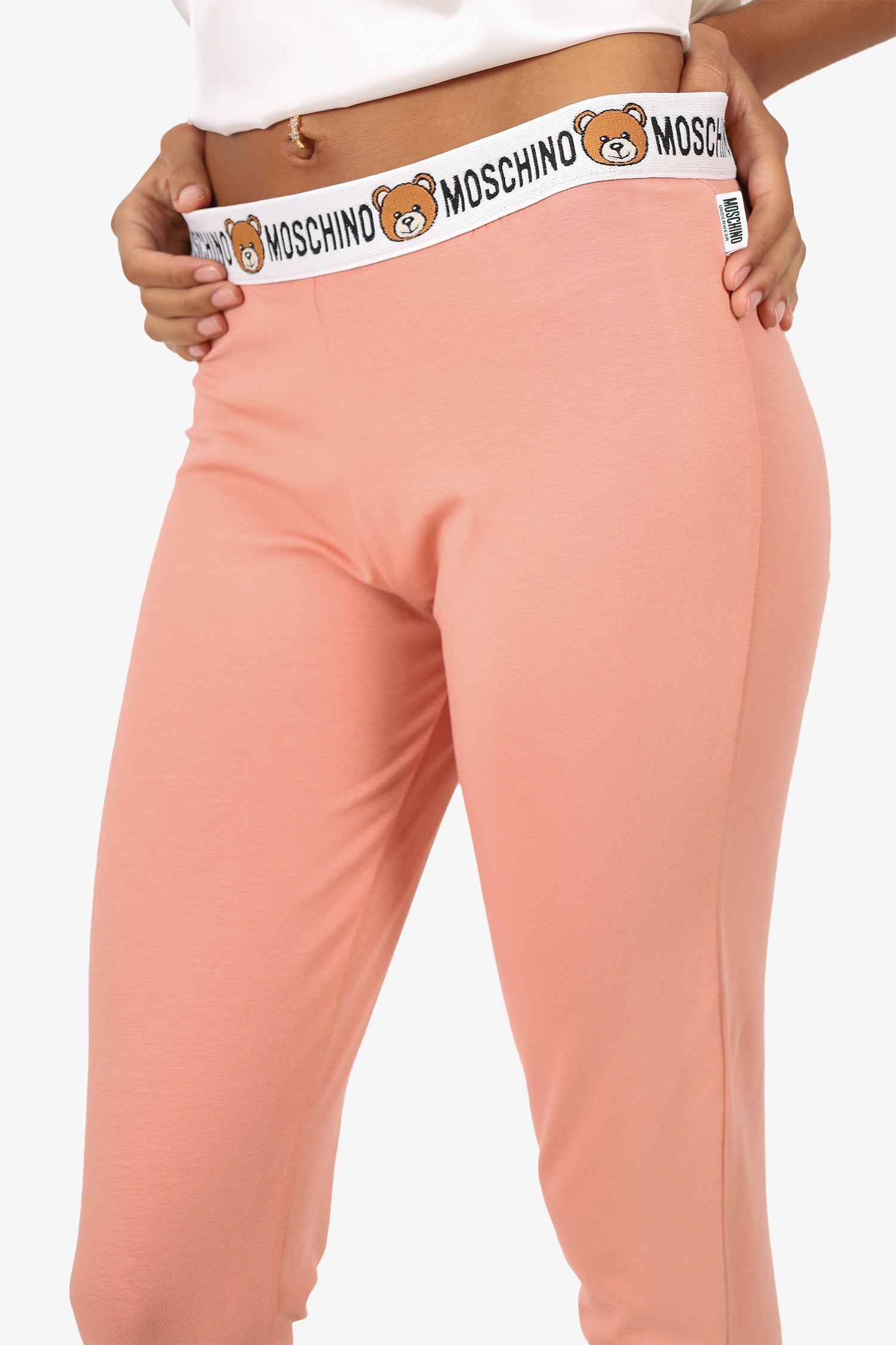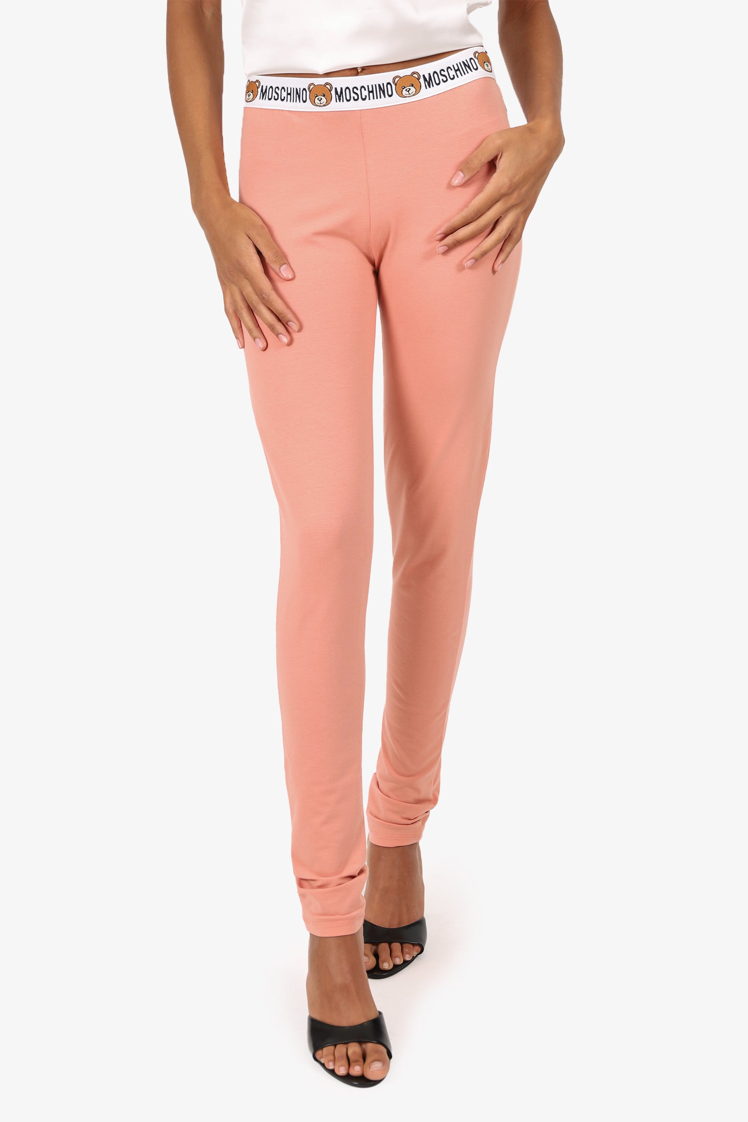Refresh availabilityMoschino Pink Teddy Bear Waist Band Leggings. Slip-on. Elasticated waistband. Tonal stitching.