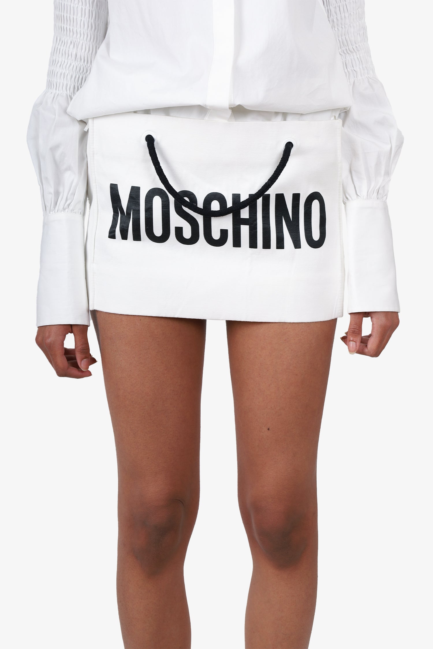 Refresh availabilityMoschino White/Black Logo Bag Skirt. Lined. Drawstring on hood. Pull-on. Lined. Tonal stitching.