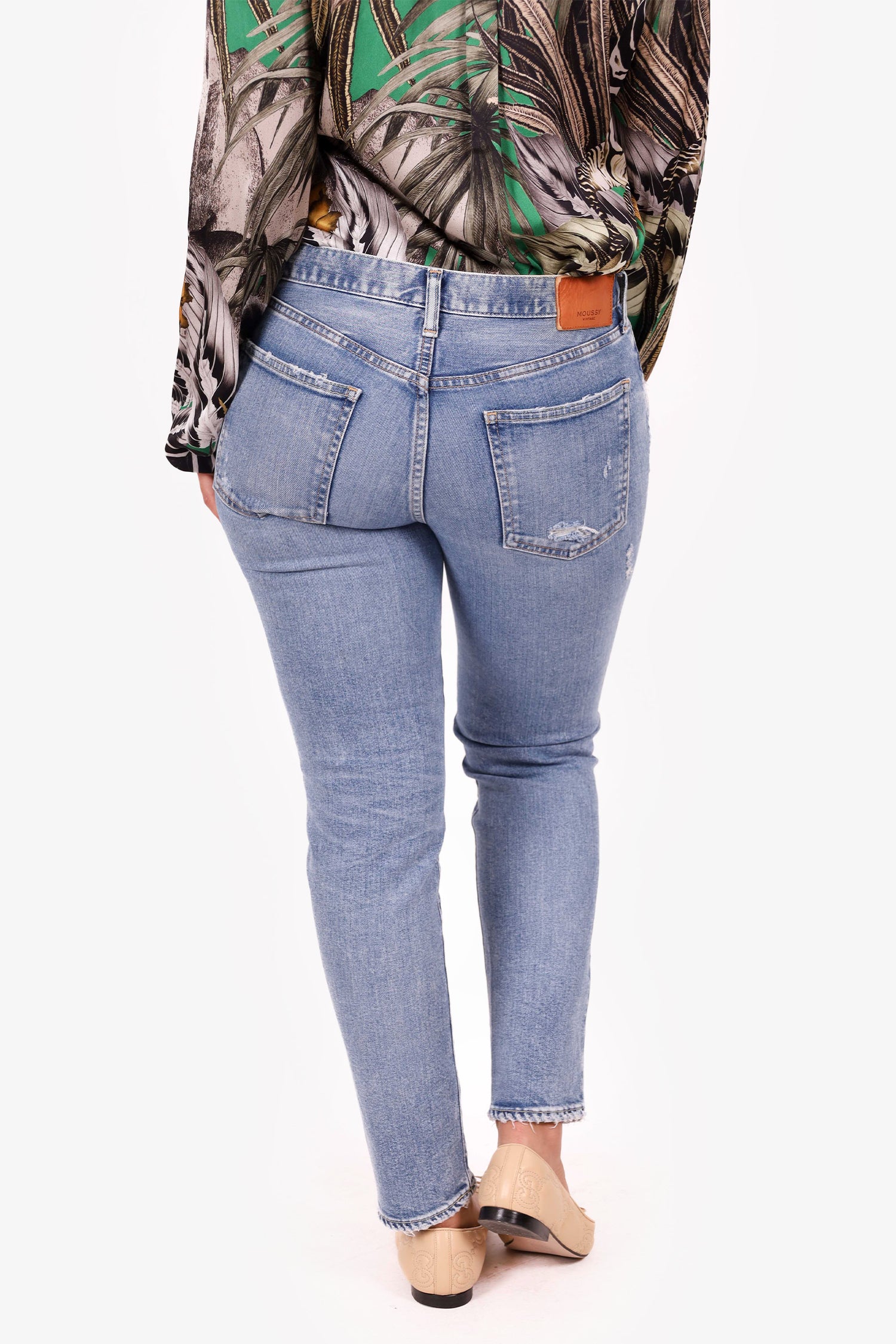 Refresh availabilityMoussy Denim Straight Leg Jeans. Slip-on. Front zip with button closure. Waistband belt loops. 5 exterior pockets; 2 front side slip and 1 mini compartment, 2 rear slip. Silver and bronze-tone hardware. Contrast stitching.