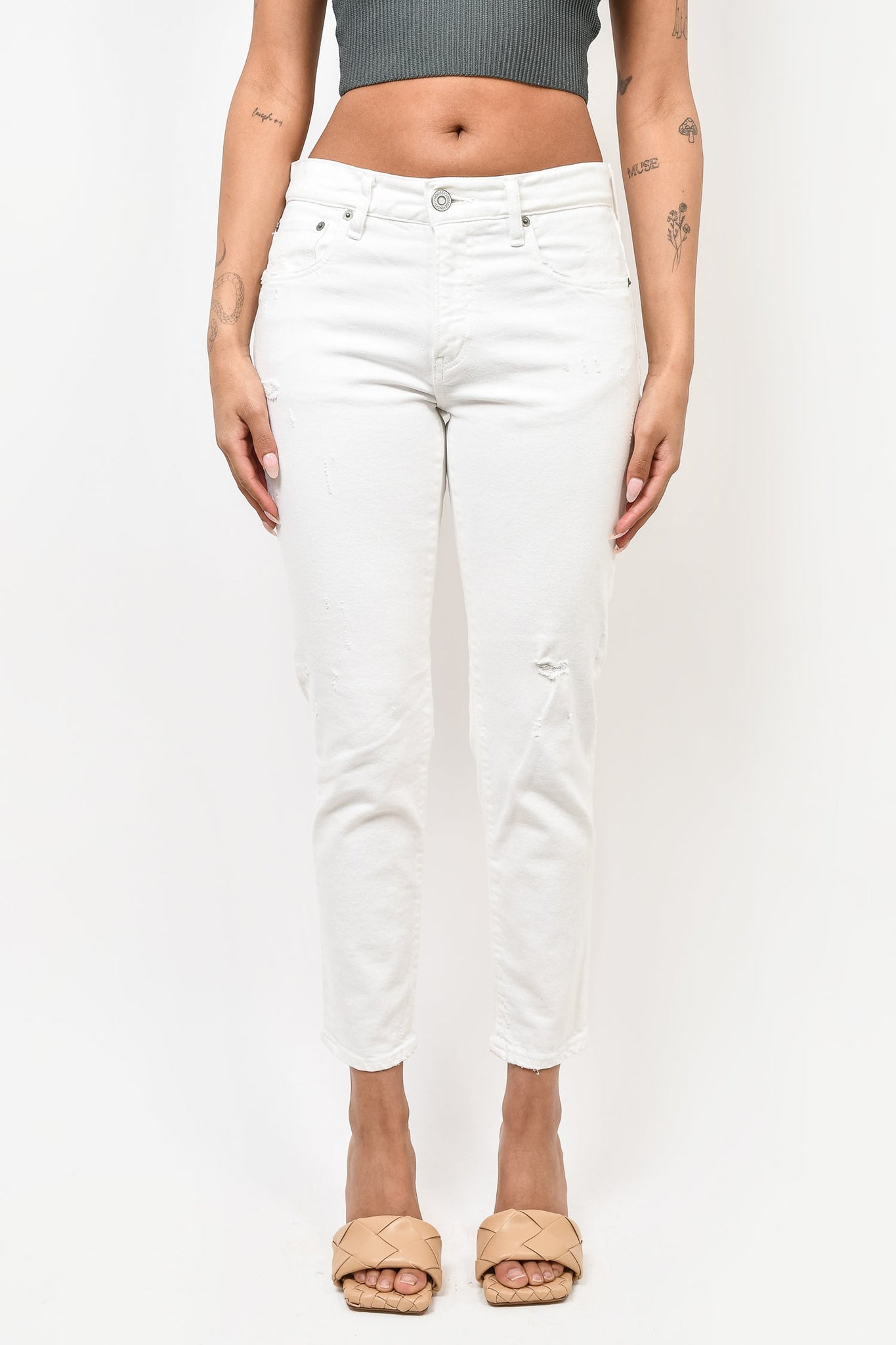 Refresh availabilityMoussy White Vintage Straight Leg Jeans. Front zip and button fly closure. 3 exterior front pockets. 2 exterior back pockets. Silver-tone hardware. Tonal stitching.