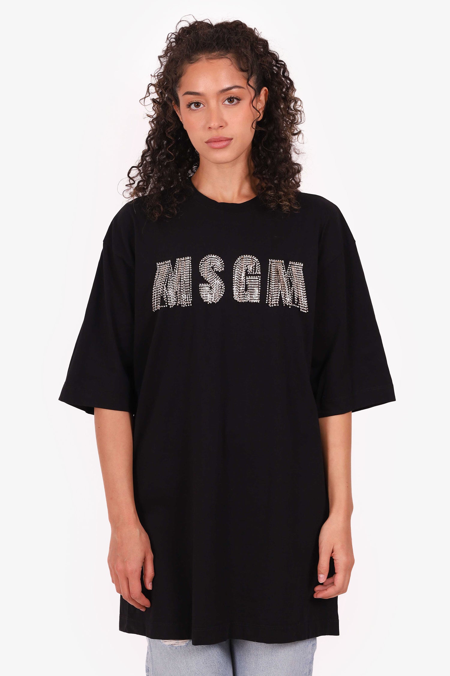 Refresh availabilityMSGM Black 'MSGM' Rhinestone Detail Top. Pull-on. Round neckline. Silver-tone hardware. Tonal stitching.