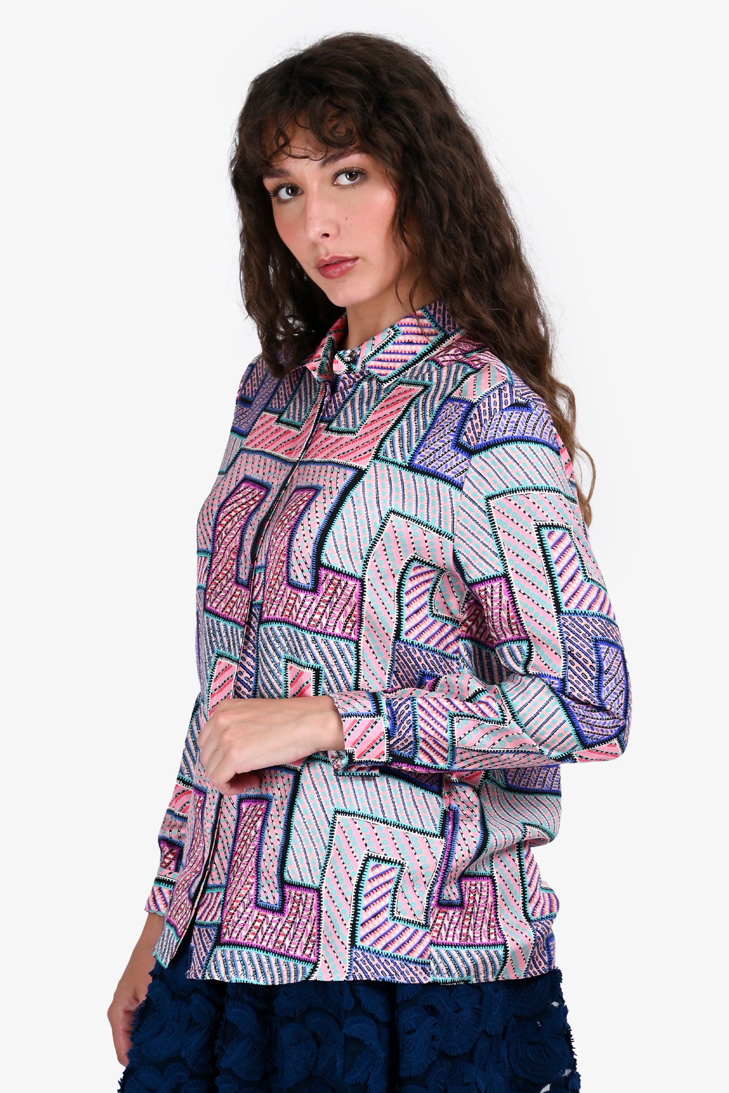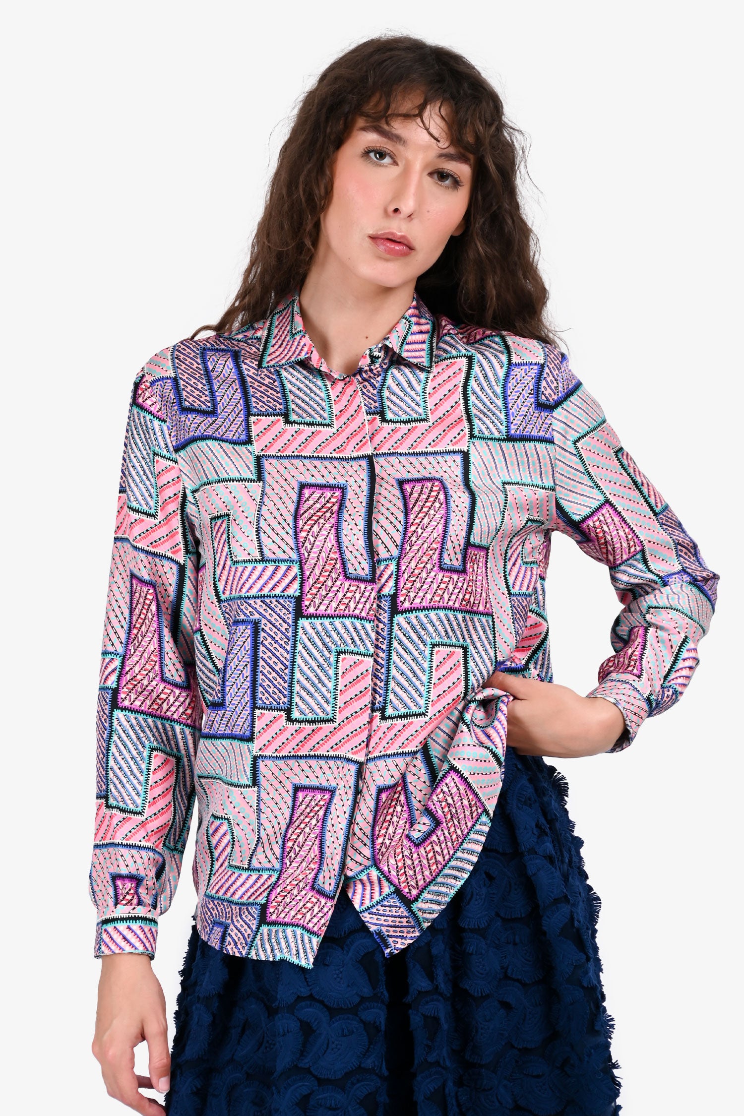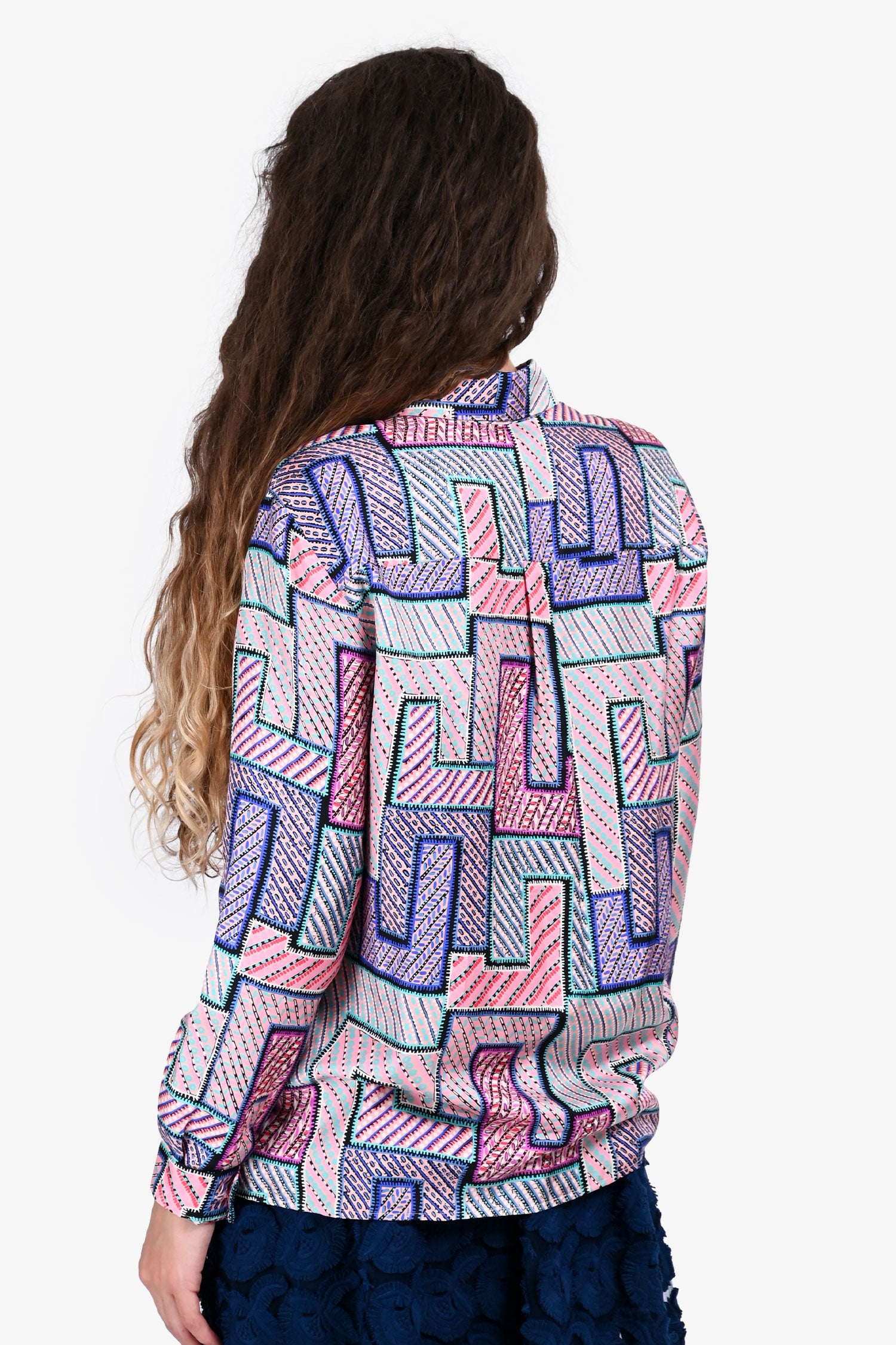 MSGM Pink Multicolour Printed Silk Button Down Blouse Size 42