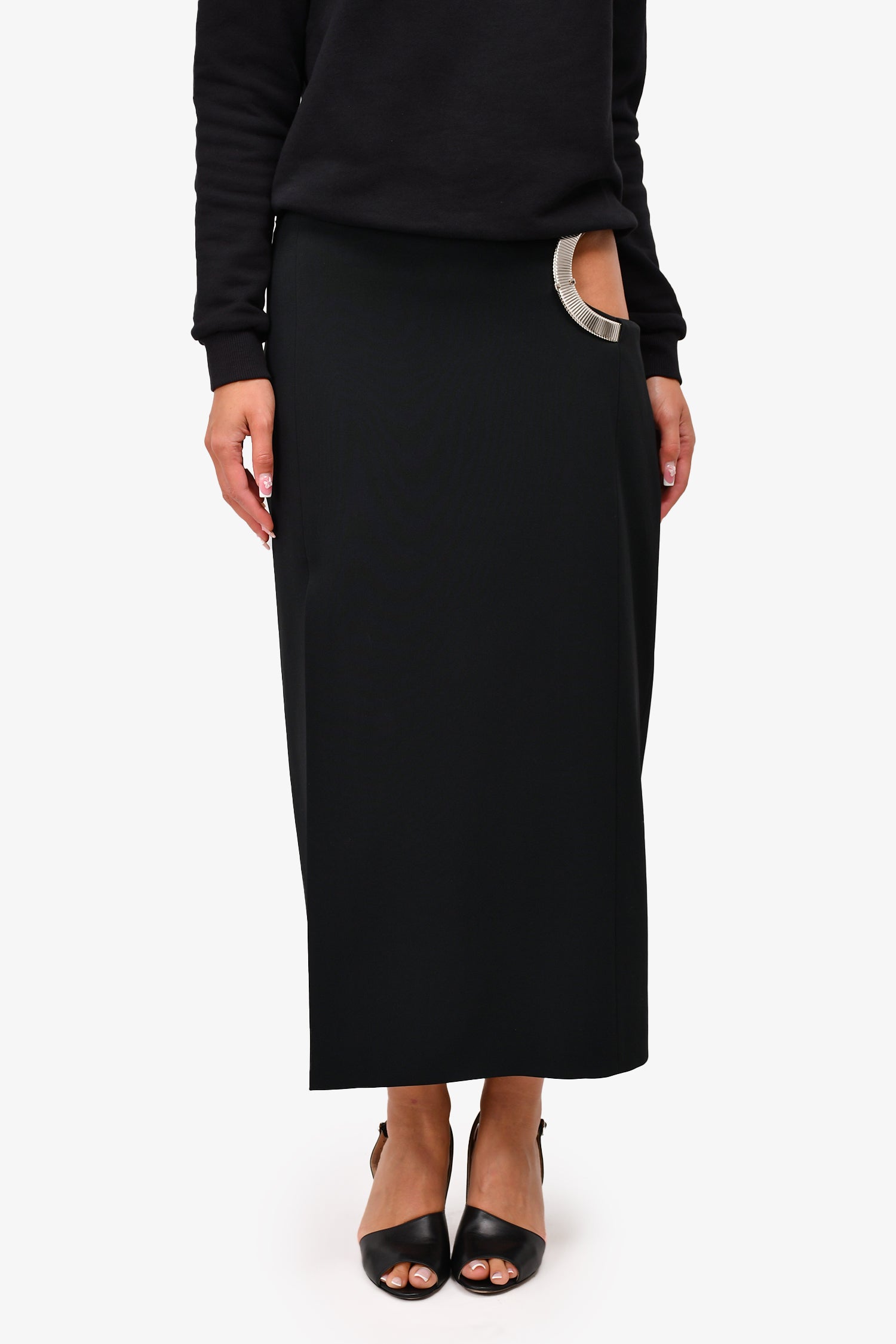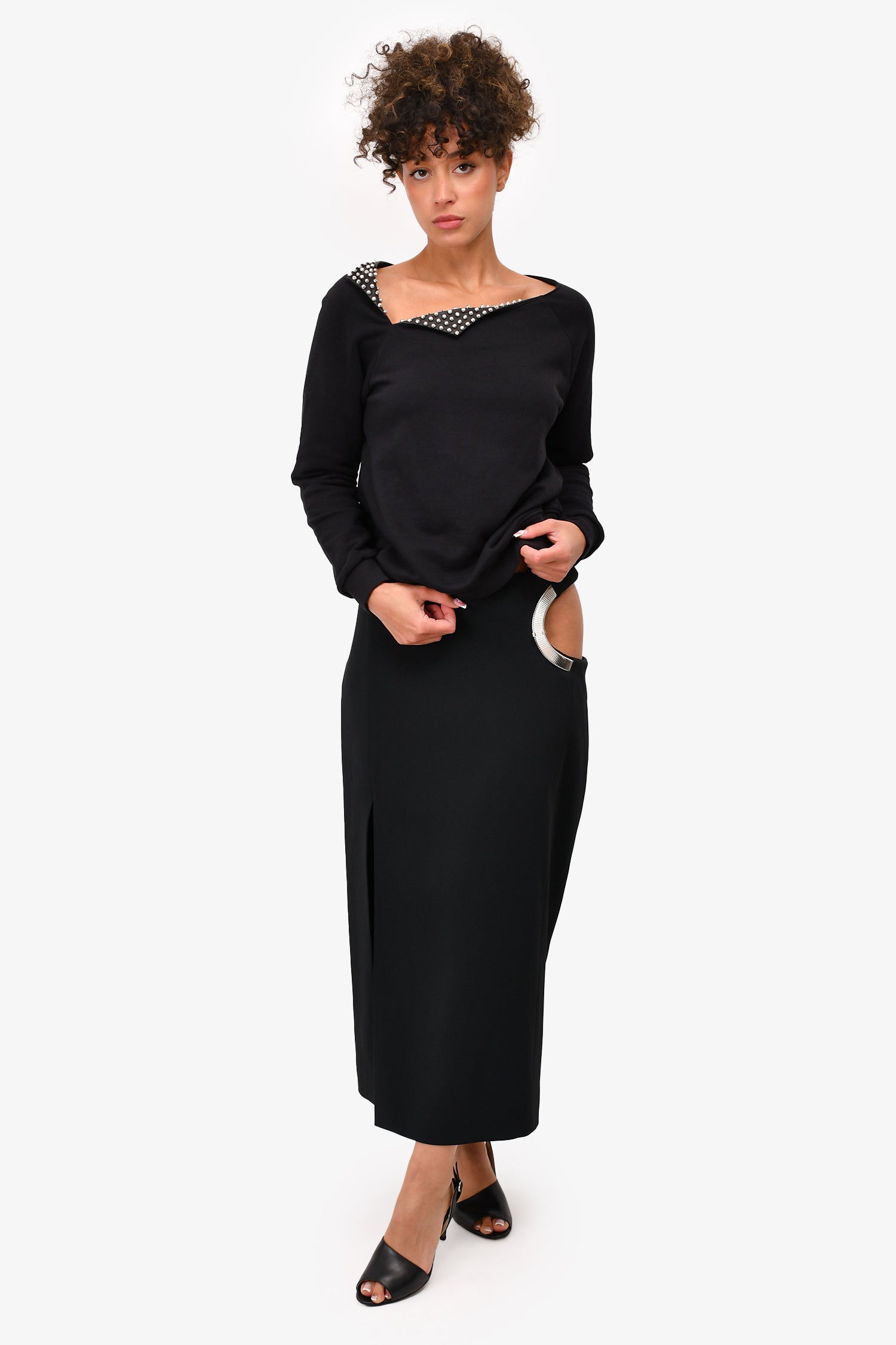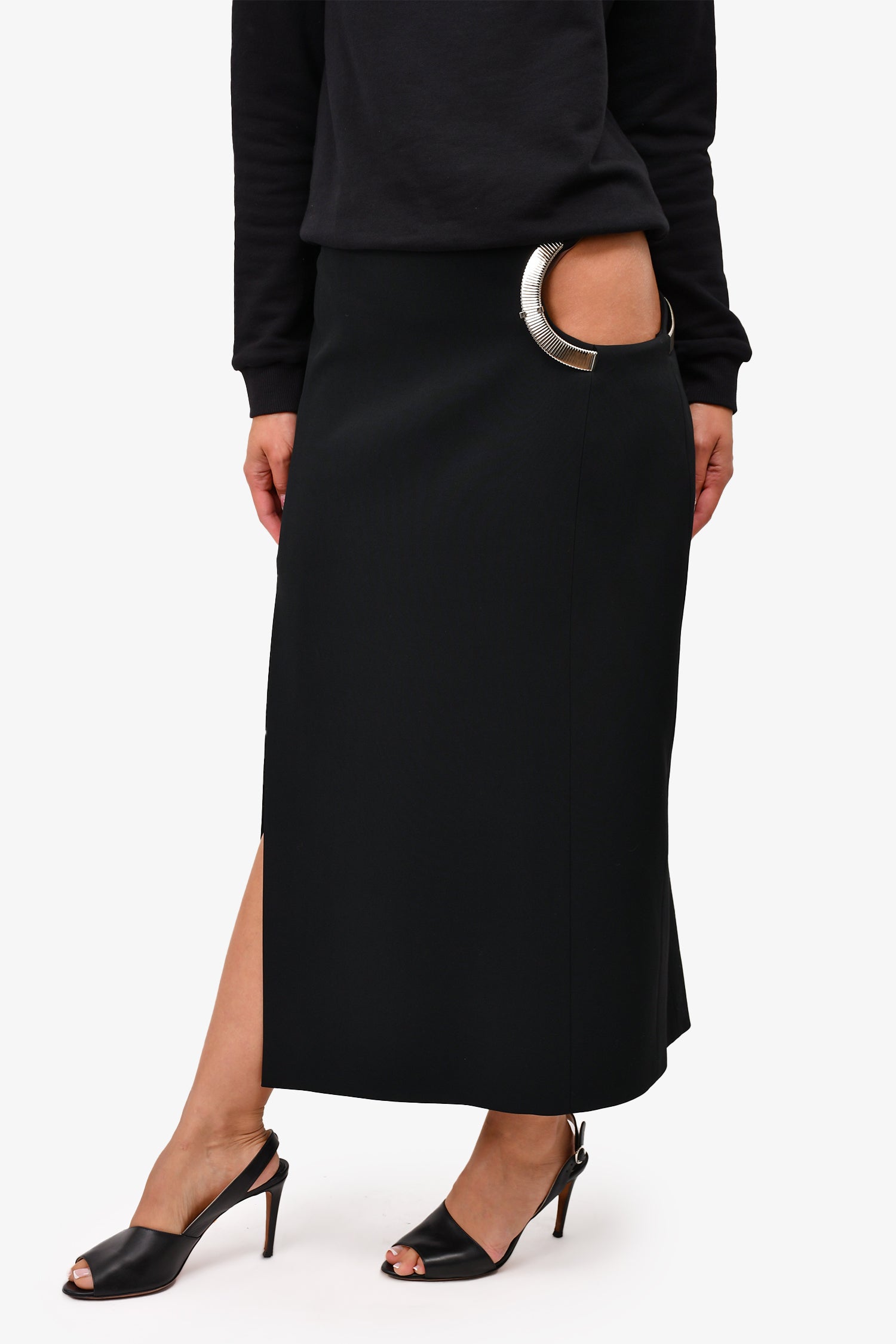 Mugler Black/Silver Belted Cut-Out Detail Midi Skirt Size 42