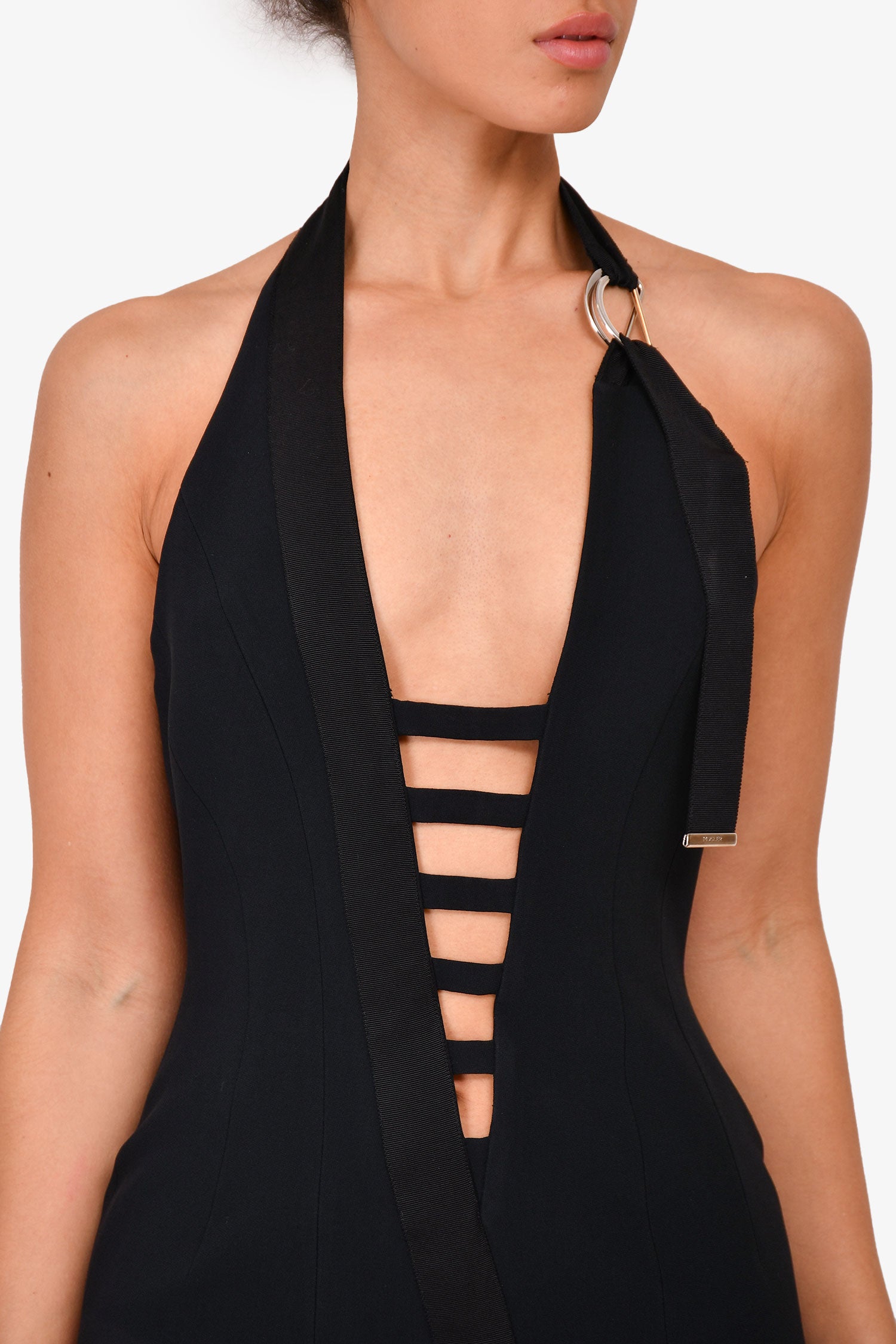 Refresh availabilityMugler Black Cutout Halter Dress. Rear zip. Sleeveless. Tonal stitching. Lined.