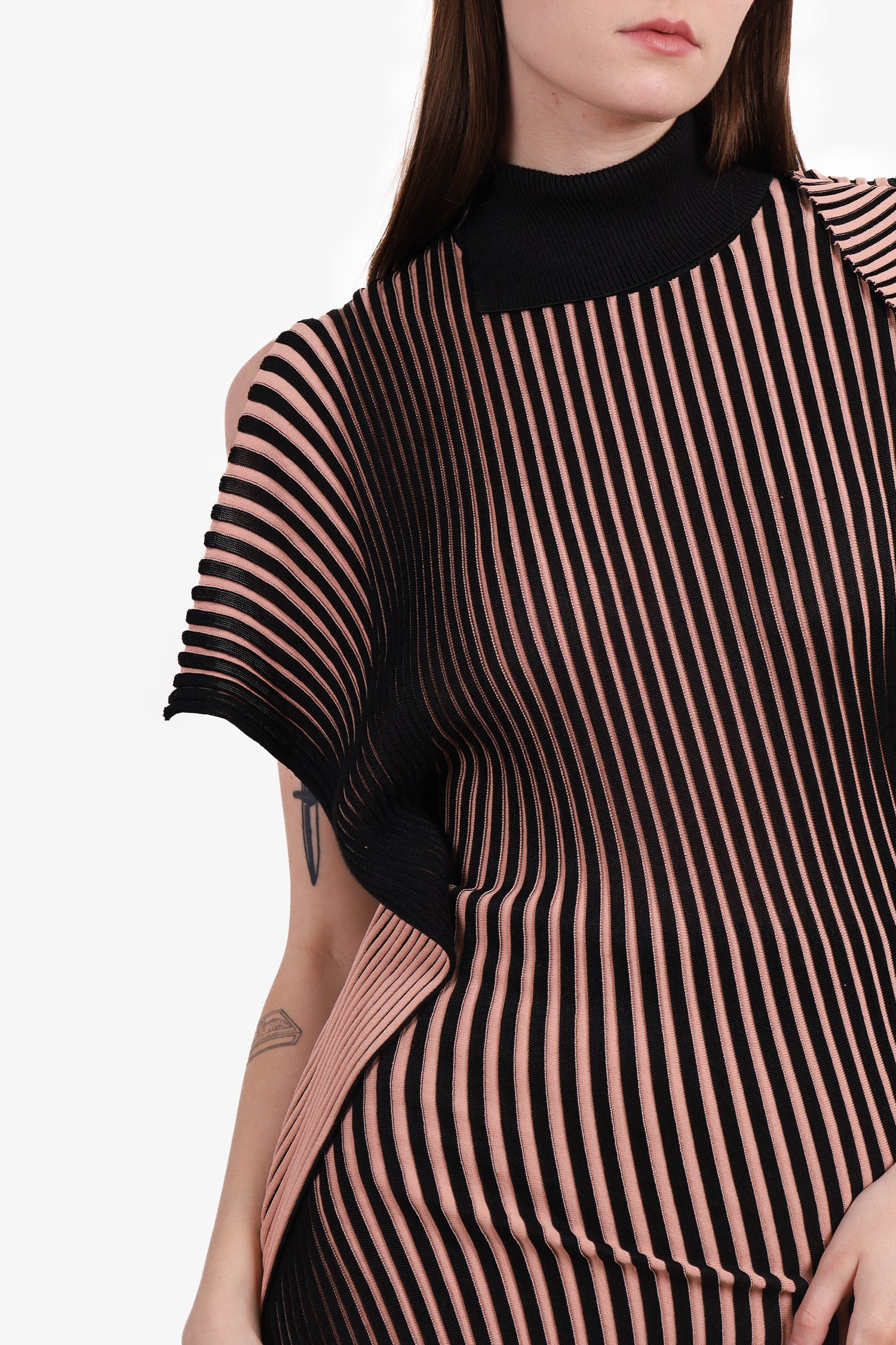 Refresh availabilityMugler Black/Nude Cut-out Detail Knitted Turtleneck Top Size S. Pull-over. Unlined. Tonal stitching. High side slits.