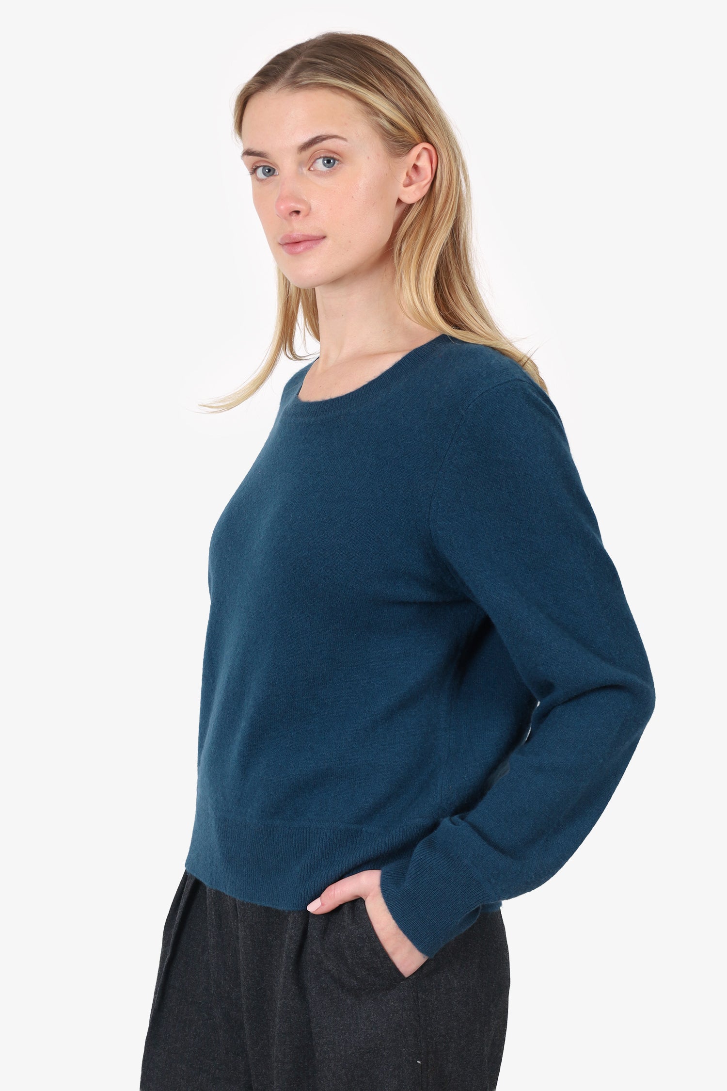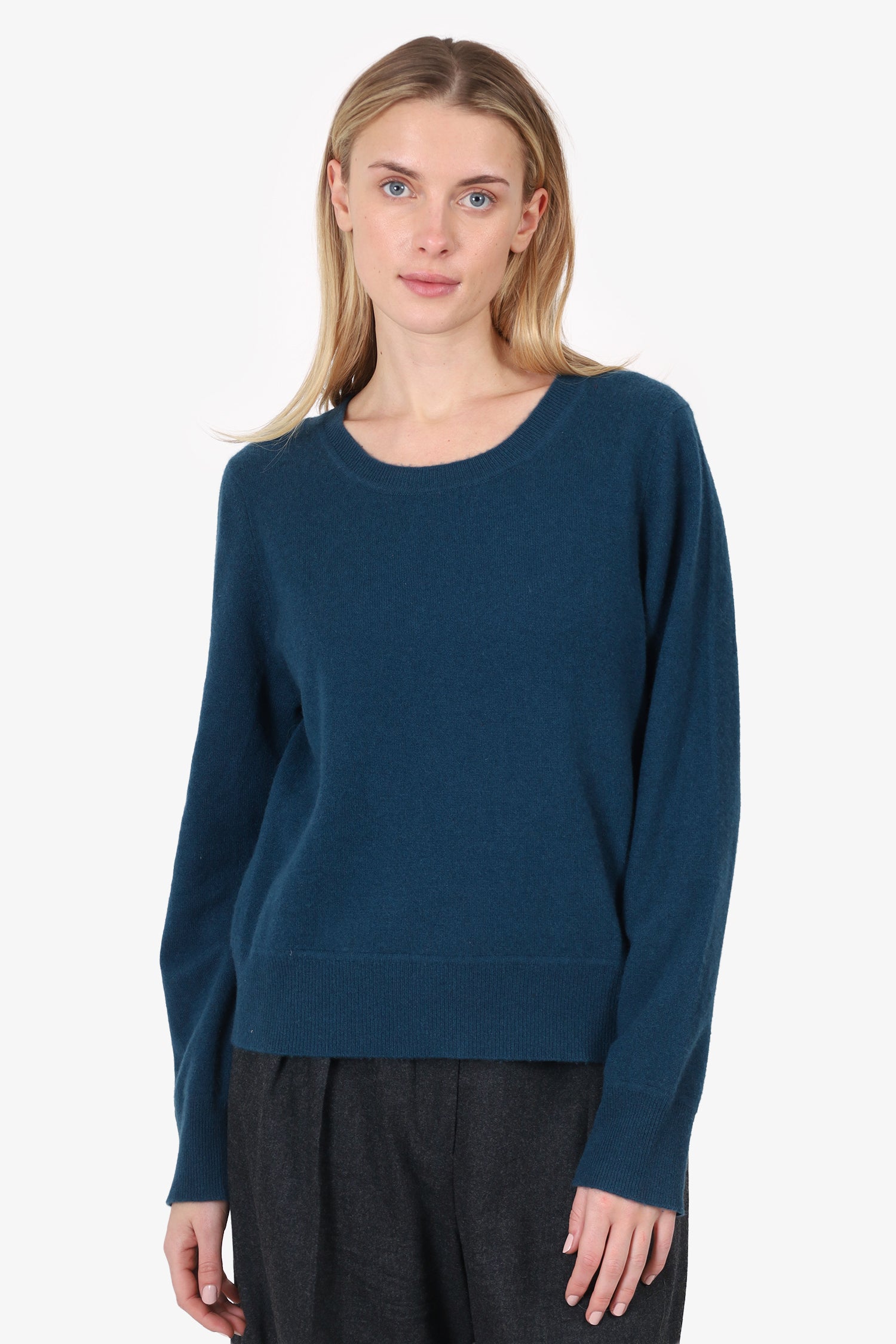 Refresh availabilityNaadam Blue Cashmere Sweater. Pull-on. Round neckline. Tonal stitching.