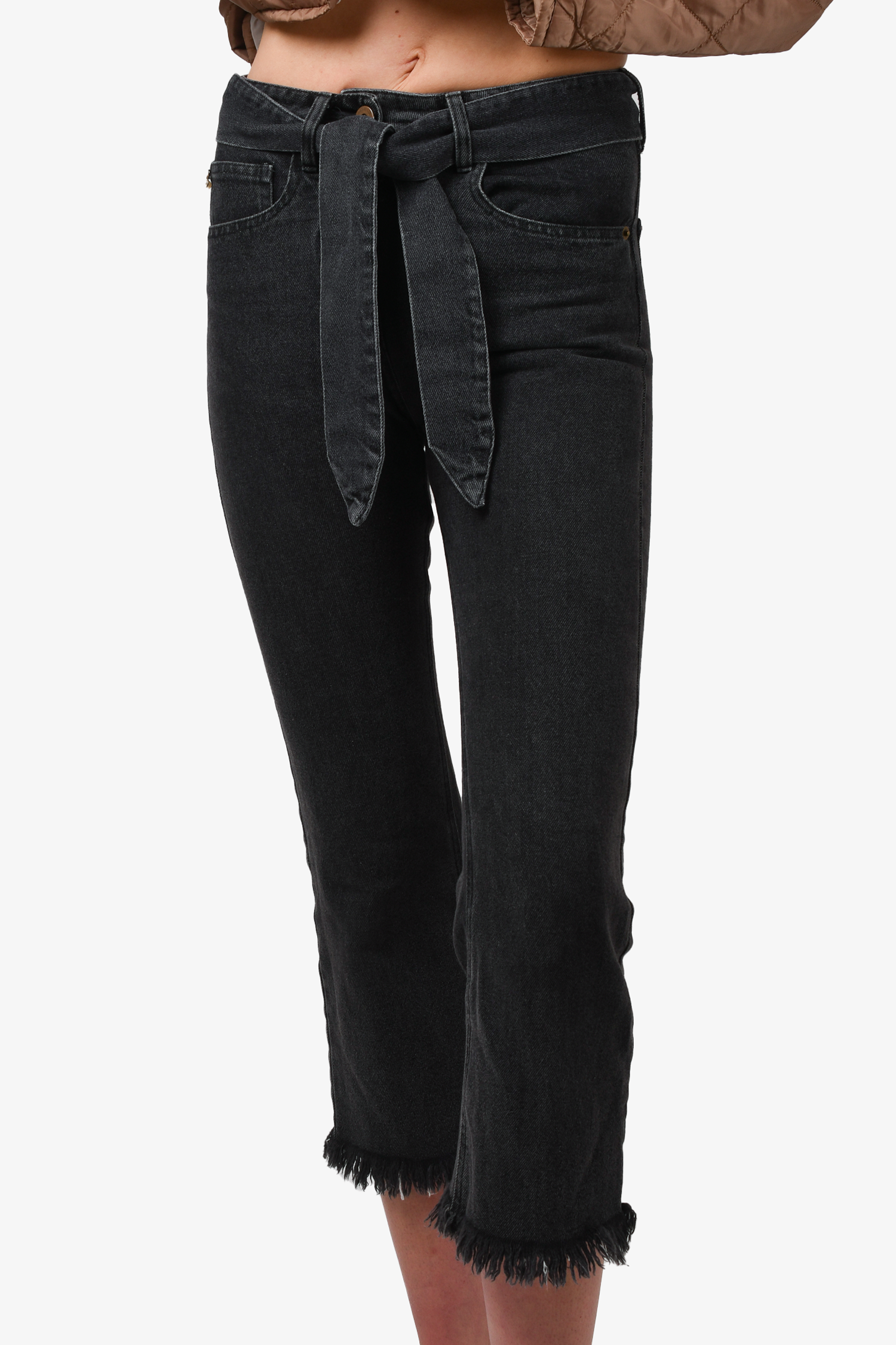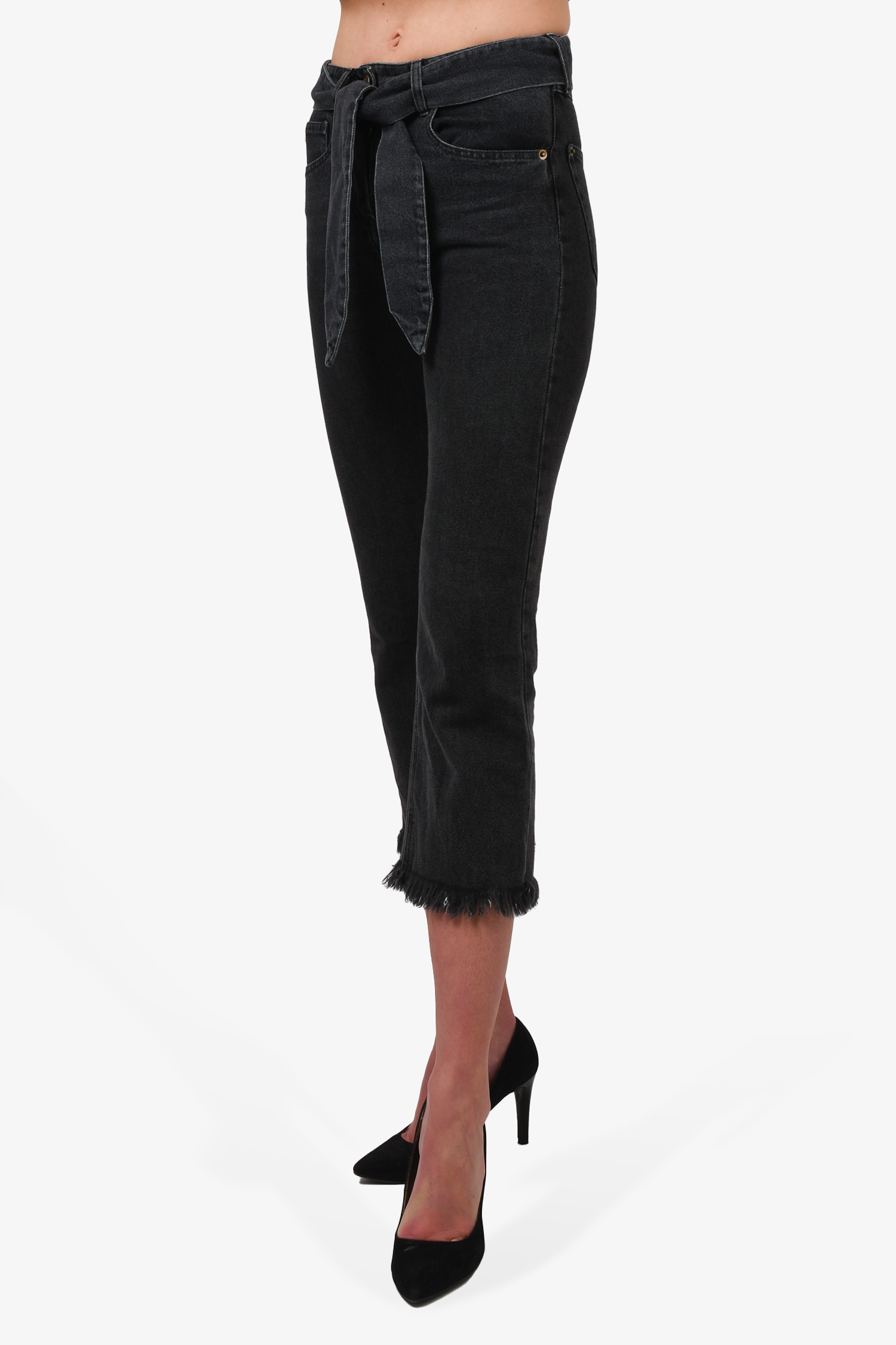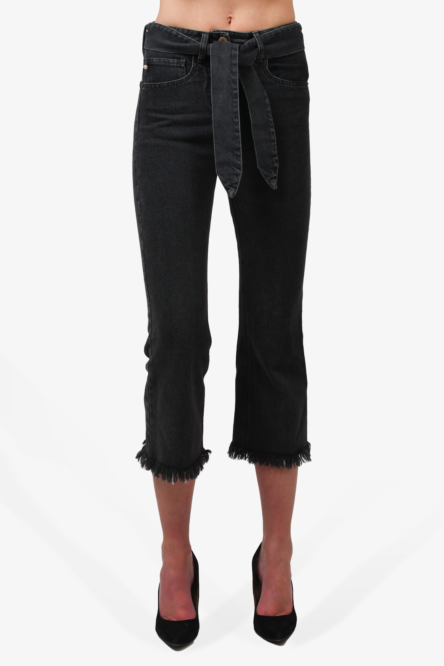 Refresh availabilityNanushka Black Medium Wash Denim. Front zip and button closure. Waist belt. Front and rear pockets. Tonal stitching.