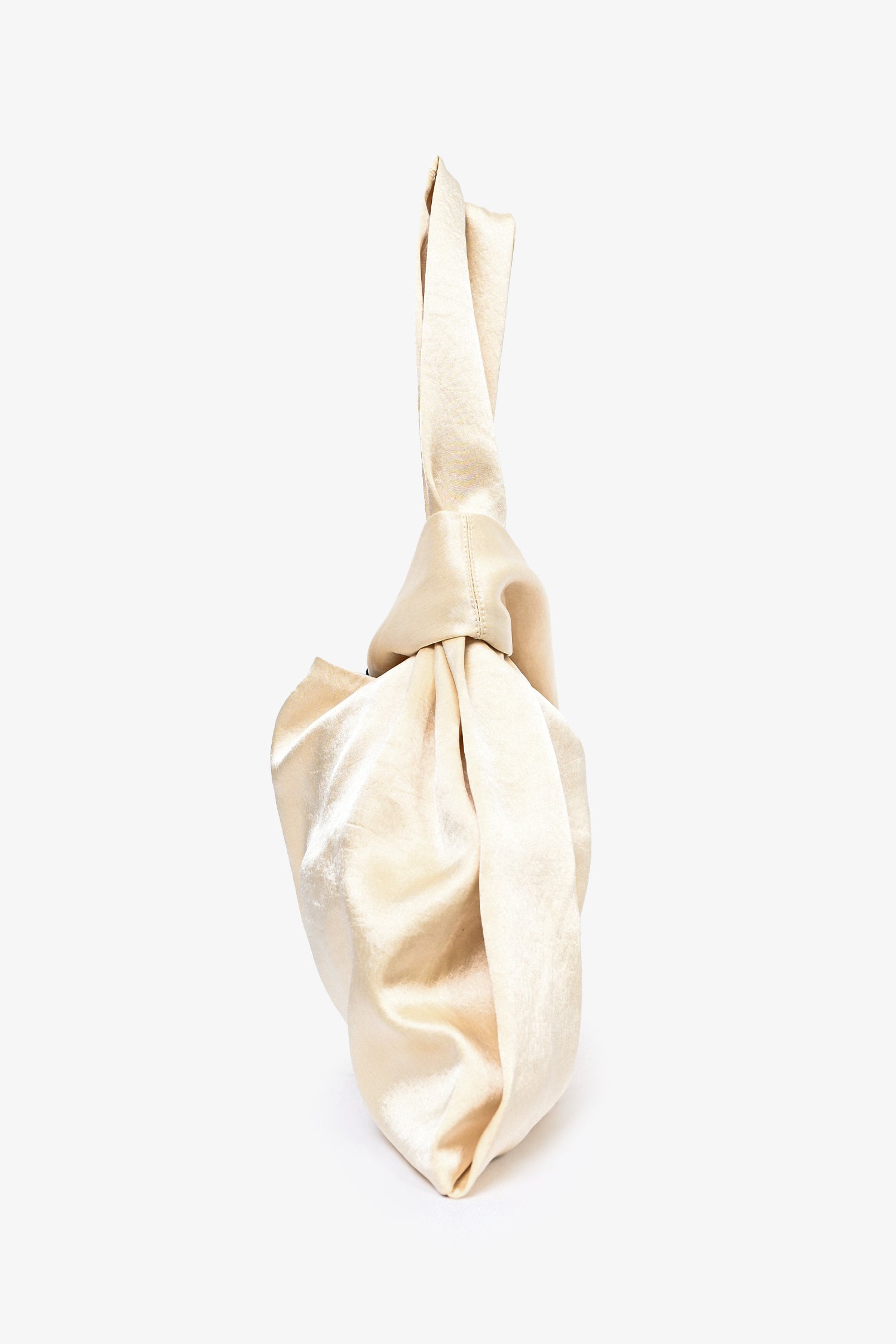 Refresh availabilityNanushka Cream Satin 'Jen' Wristlet Bag. Open top and interior.