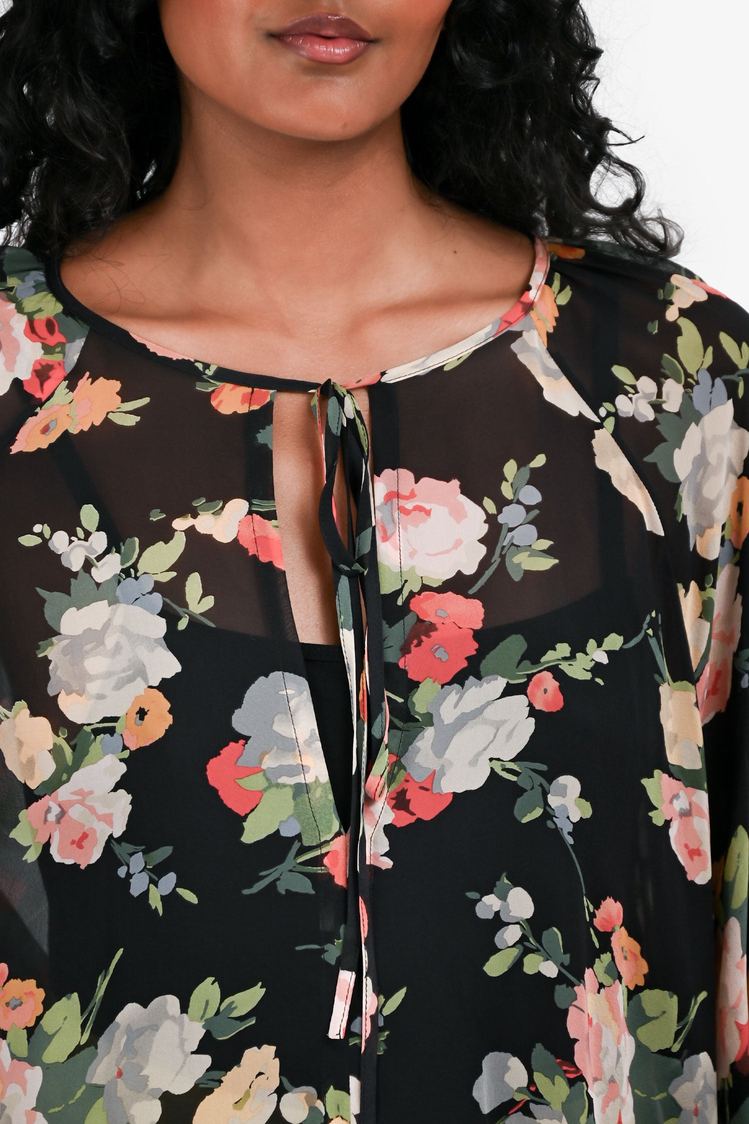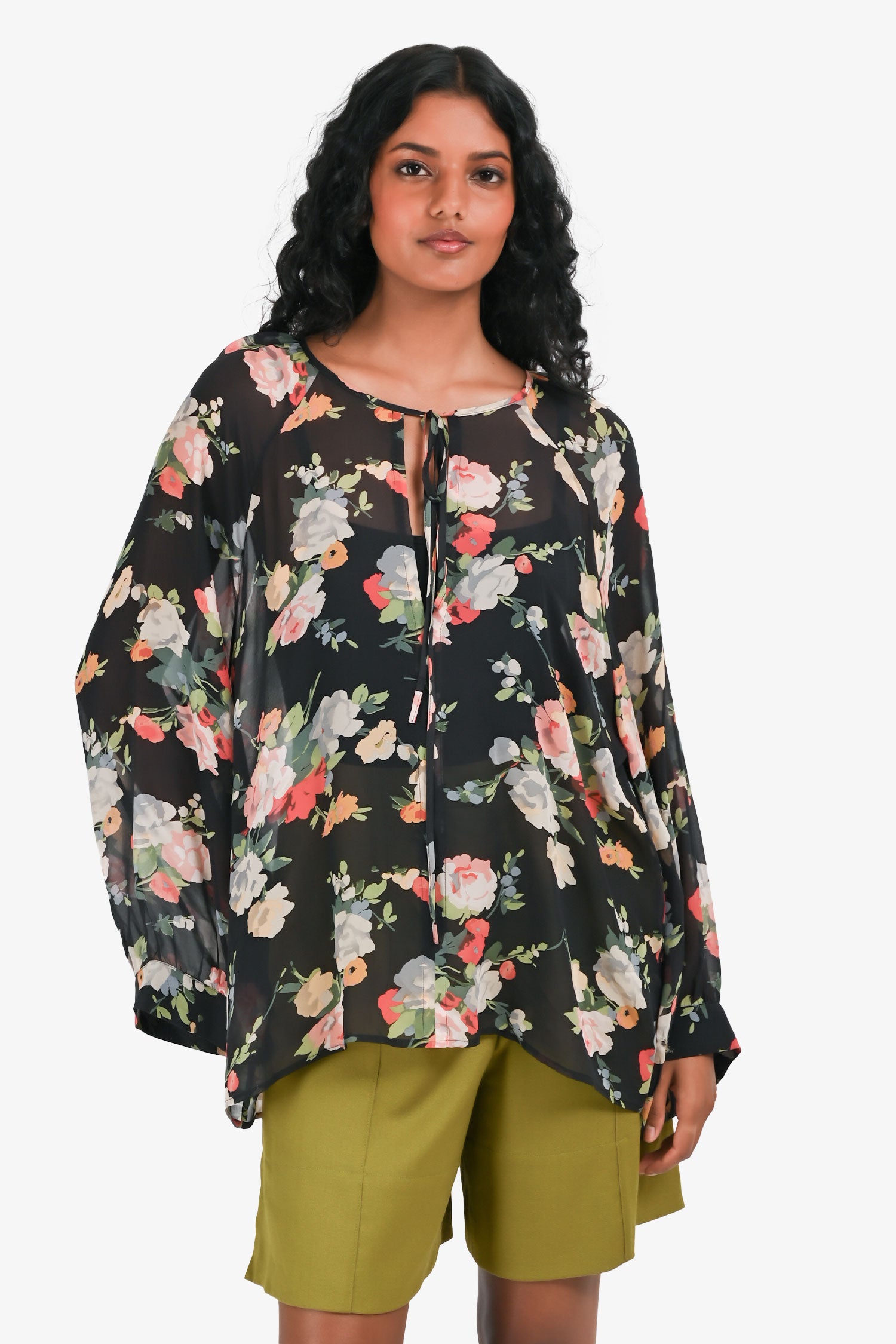 Refresh availabilityNili Lotan Black/Pink Silk Floral Sheer Top. Sheer. Neck tie detail. Tonal stitching.