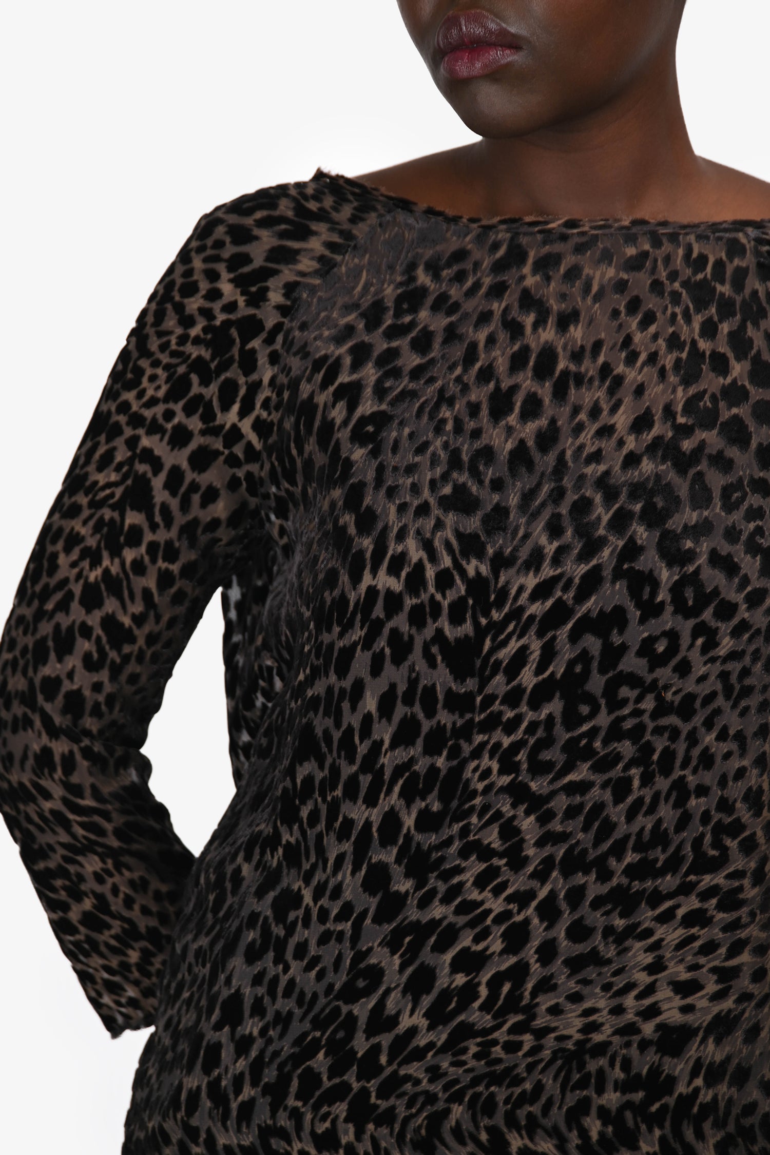Refresh availabilityNili Lotan Grey/Black Velvet Leopard Print Long Sleeve Sheer Top. Slip-on. Round neckline. Tonal stitching.