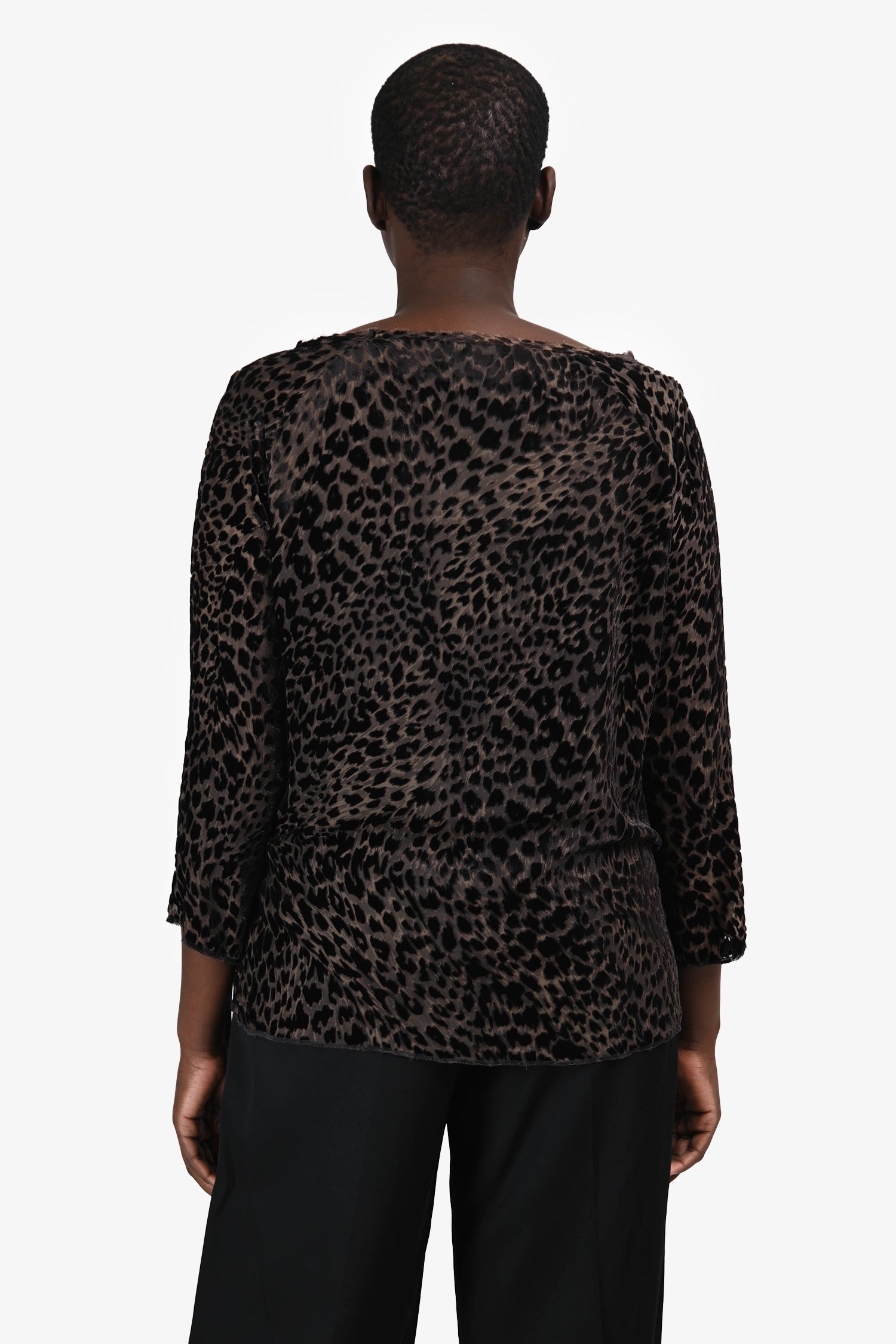 Nili Lotan Grey/Black Velvet Leopard Print Long Sleeve Sheer Top Size M