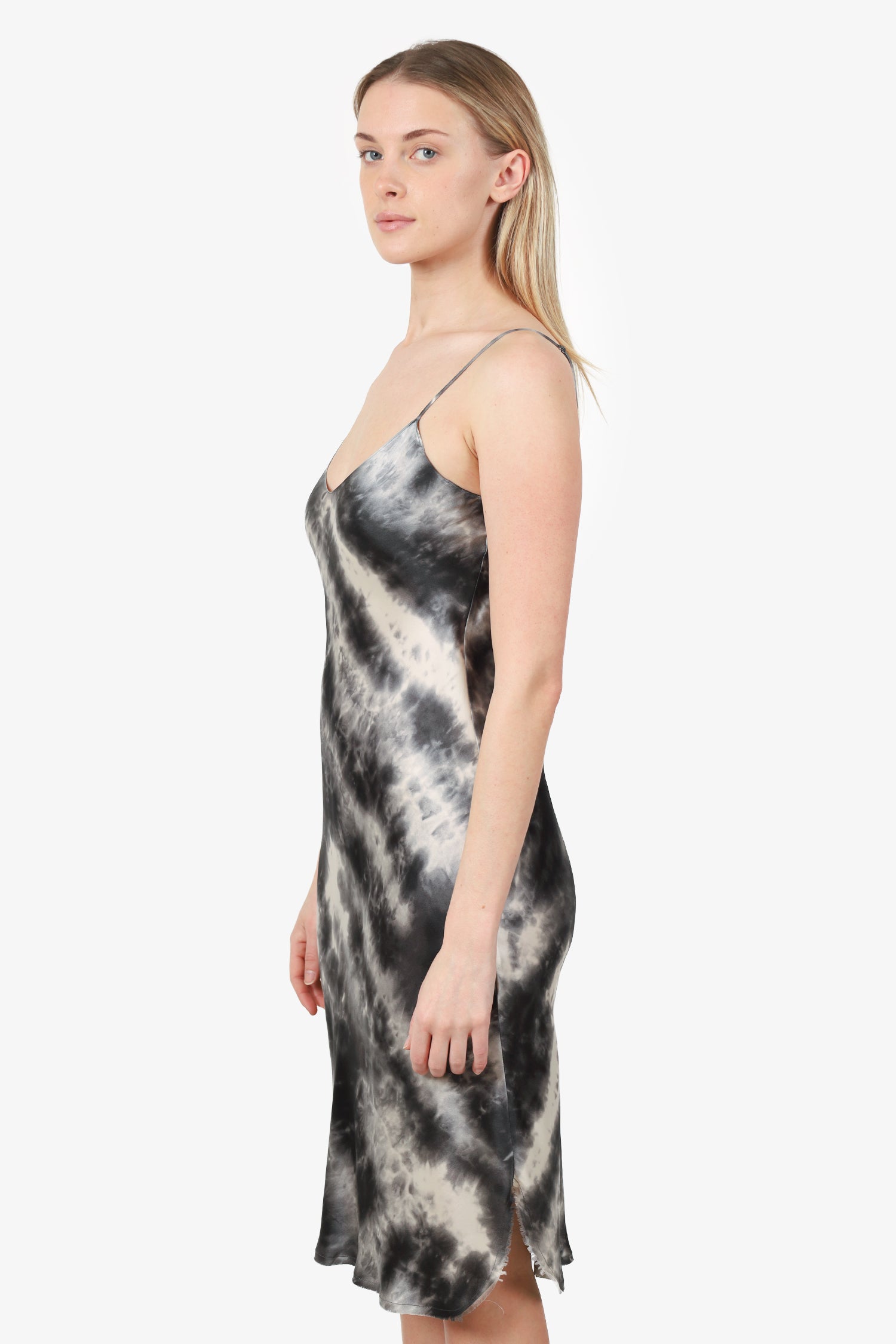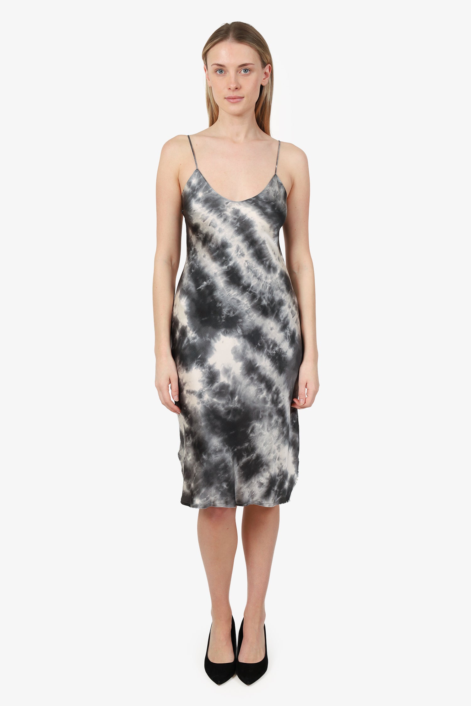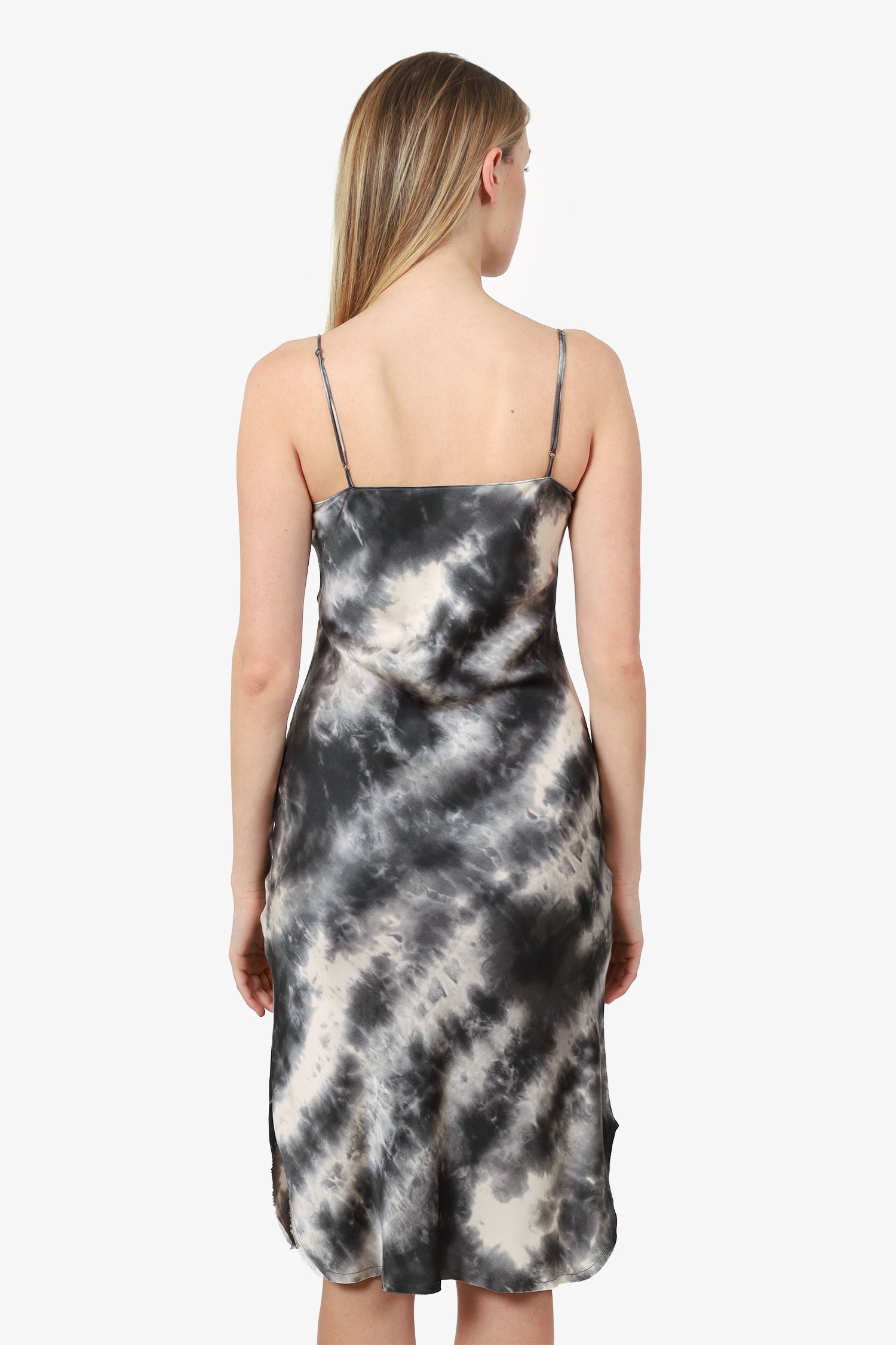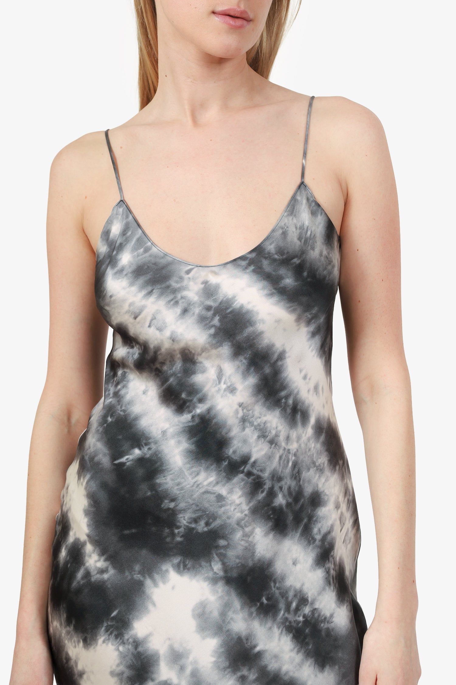 Refresh availabilityNili Lotan Gunmetal Tie Dye Silk Short Cami Dress. Round neckline. Tonal stitching. Gunmetal-tone hardware. Tonal stitching.