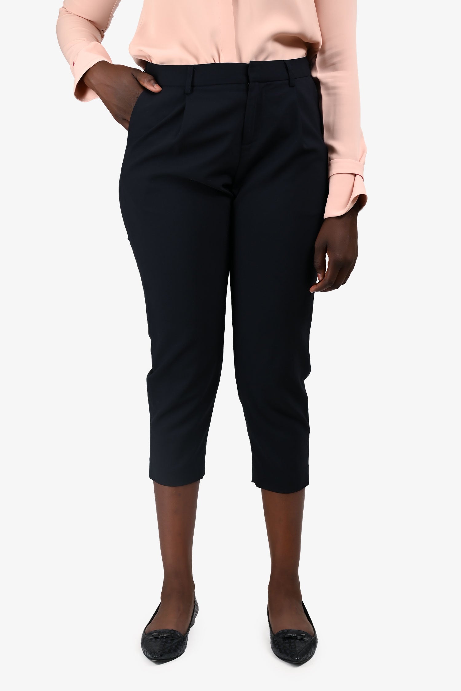Nili Lotan Navy Wool Slim Fit Ankle Trousers Size 6