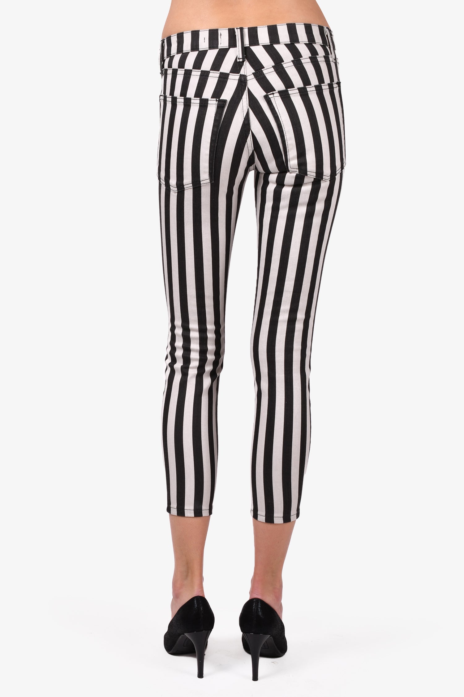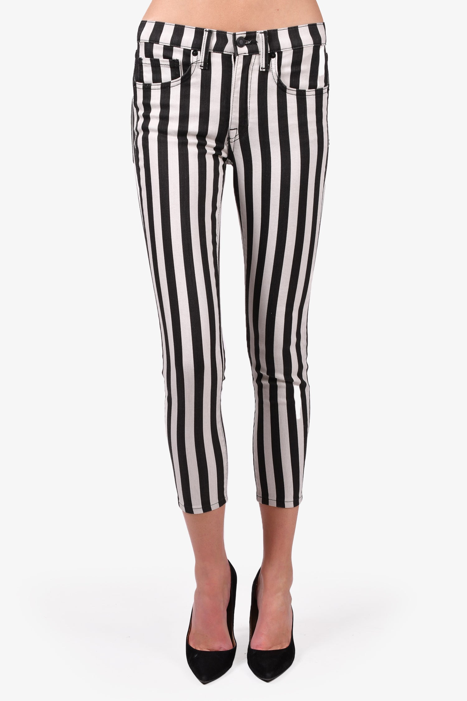 Refresh availabilityNili Lotan White/Black Striped Skinny Jeans. Front zip and button closure. Front and rear pockets. Waist belt loops. Tonal stitching.