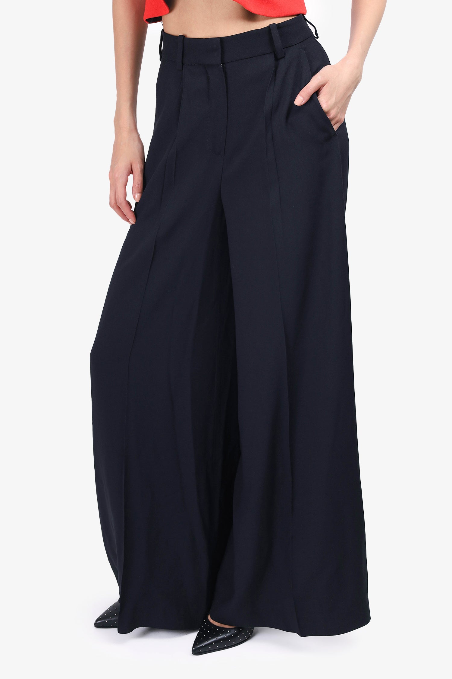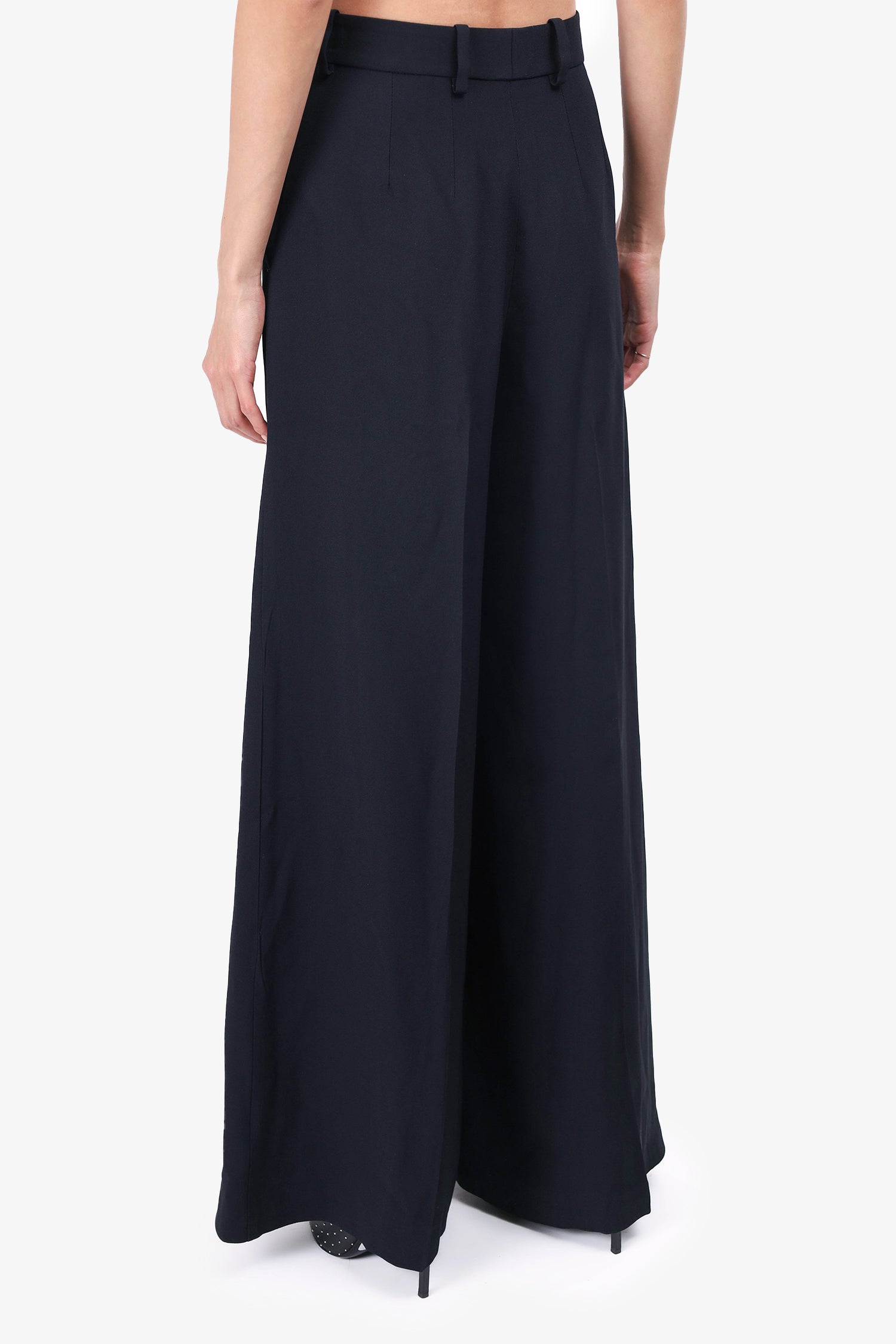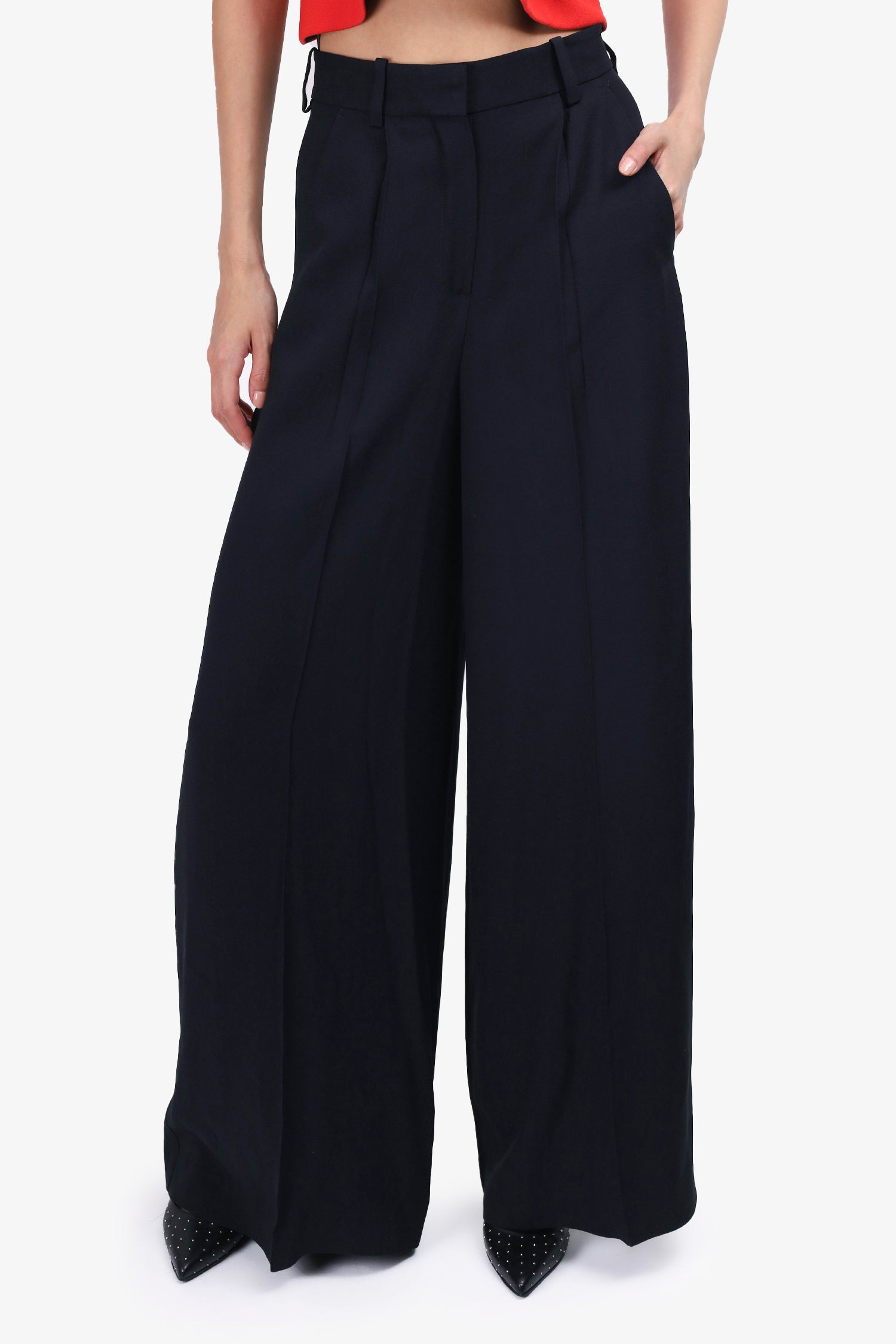 Refresh availabilityNina Ricci Black Wide Leg Pants. Front zip with double hook and single button-up closure. 2 front slip pockets. Belt loops around waistline. Unlined. Tonal stitching.