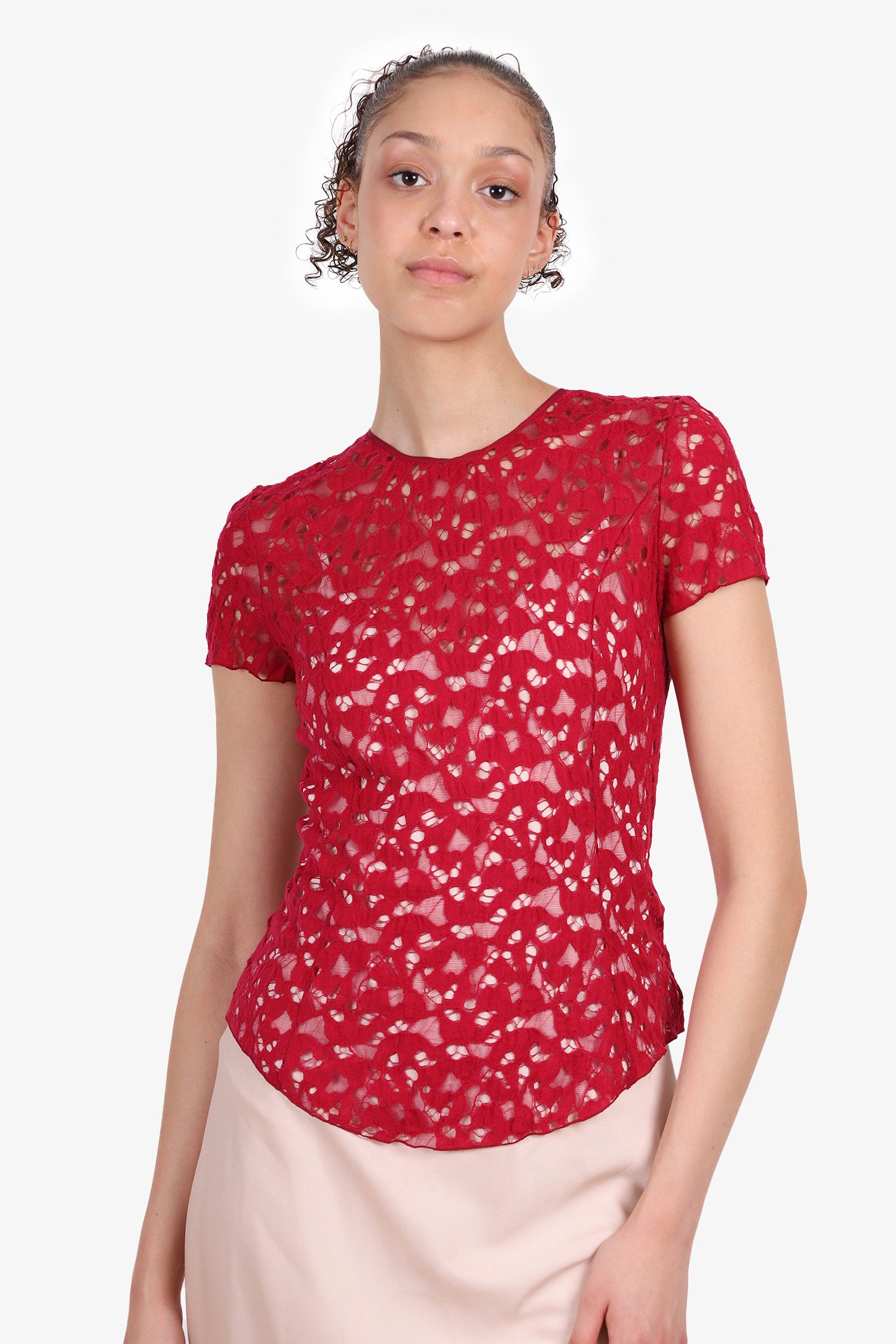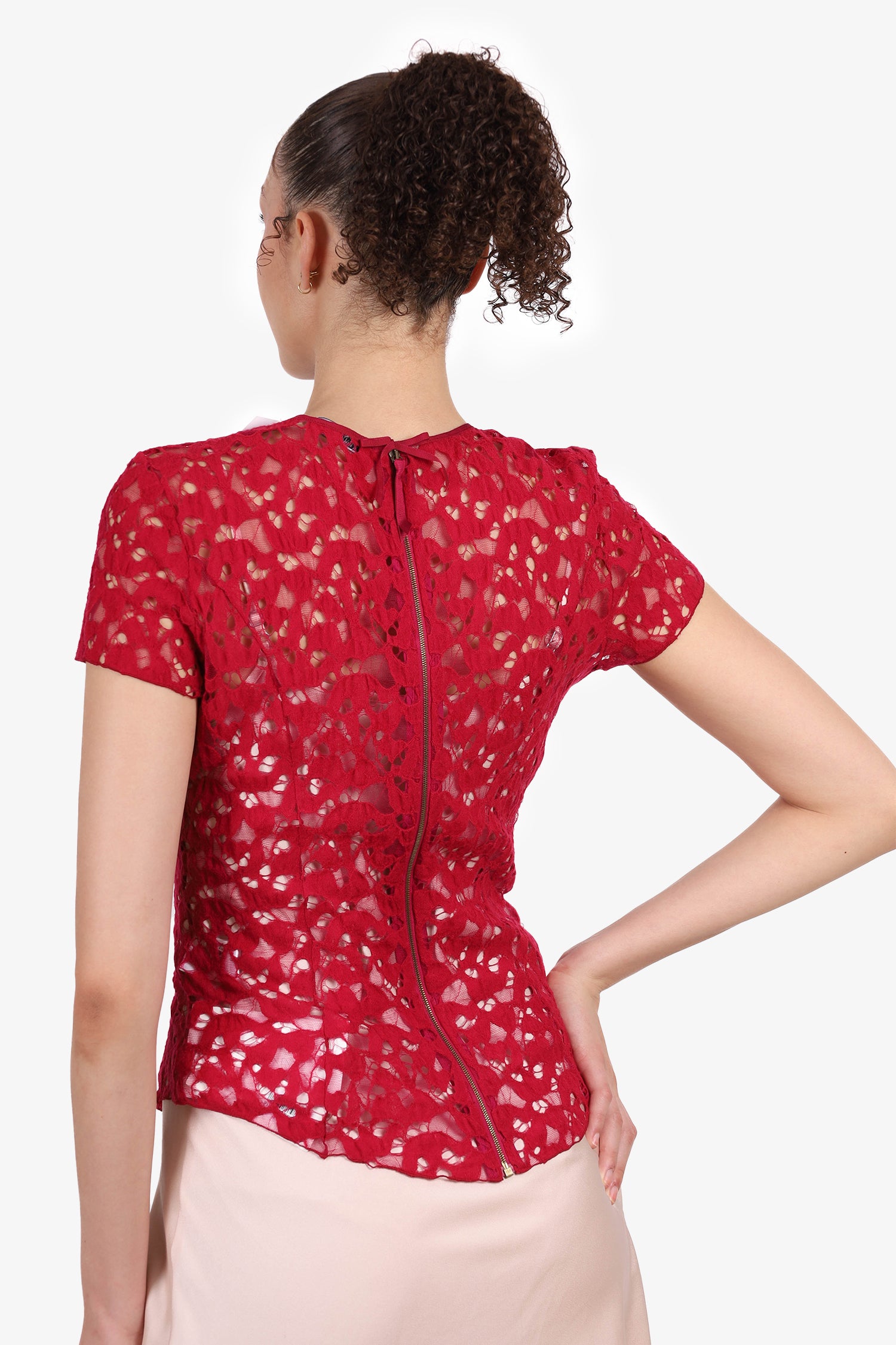 Nina Ricci Pink Lace Short-Sleeve Top Size 40