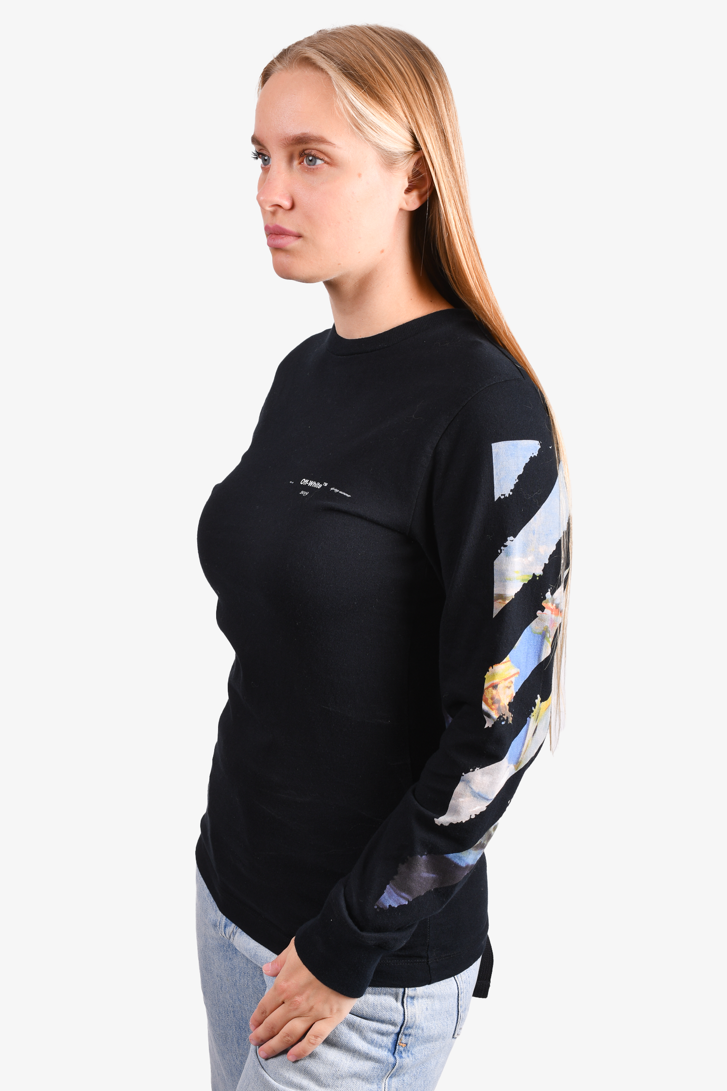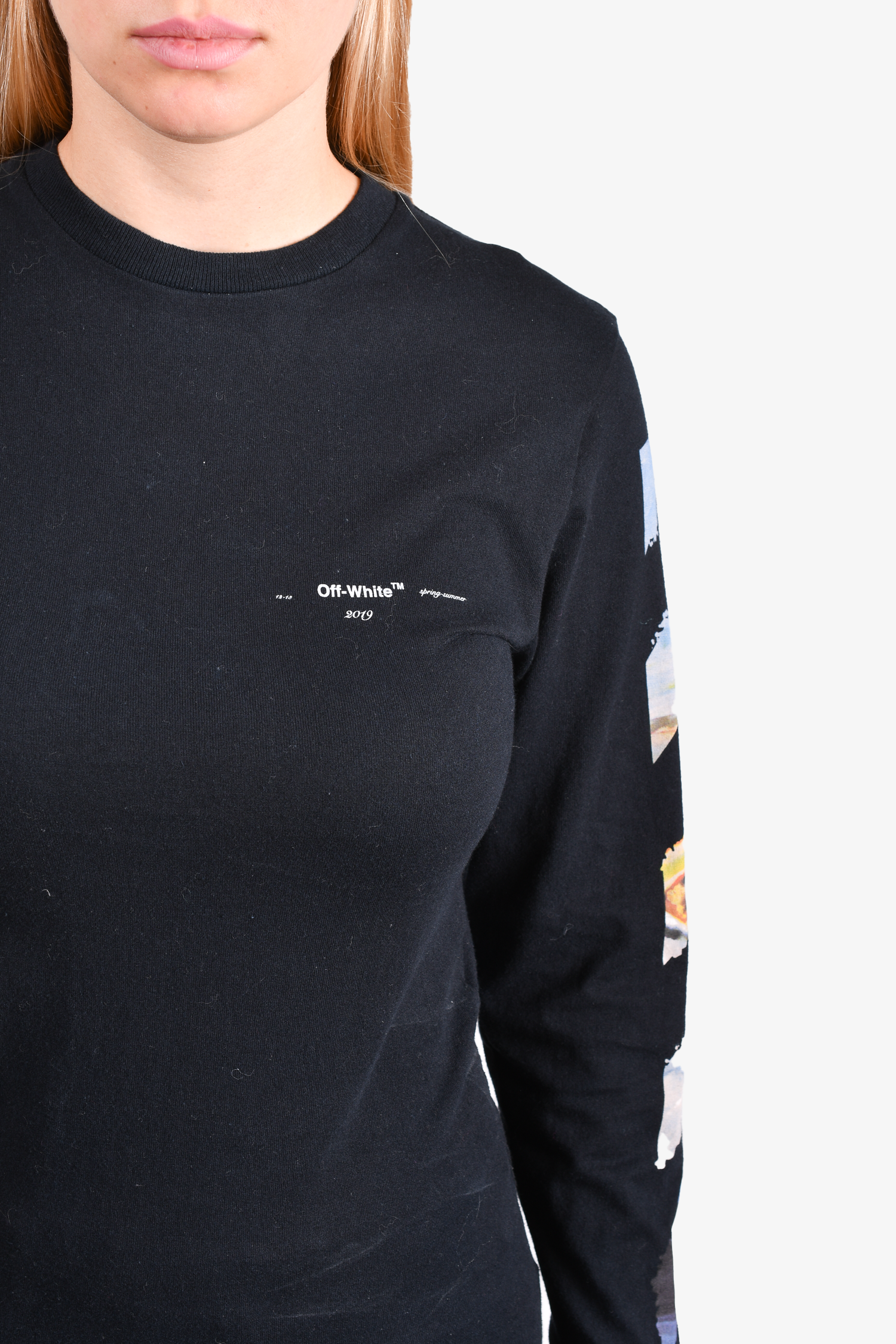 Refresh availabilityOff-White Black Cotton Graphic Shirt. Round neck. Pull-on. Ribbed cuffs. Tonal stitching.