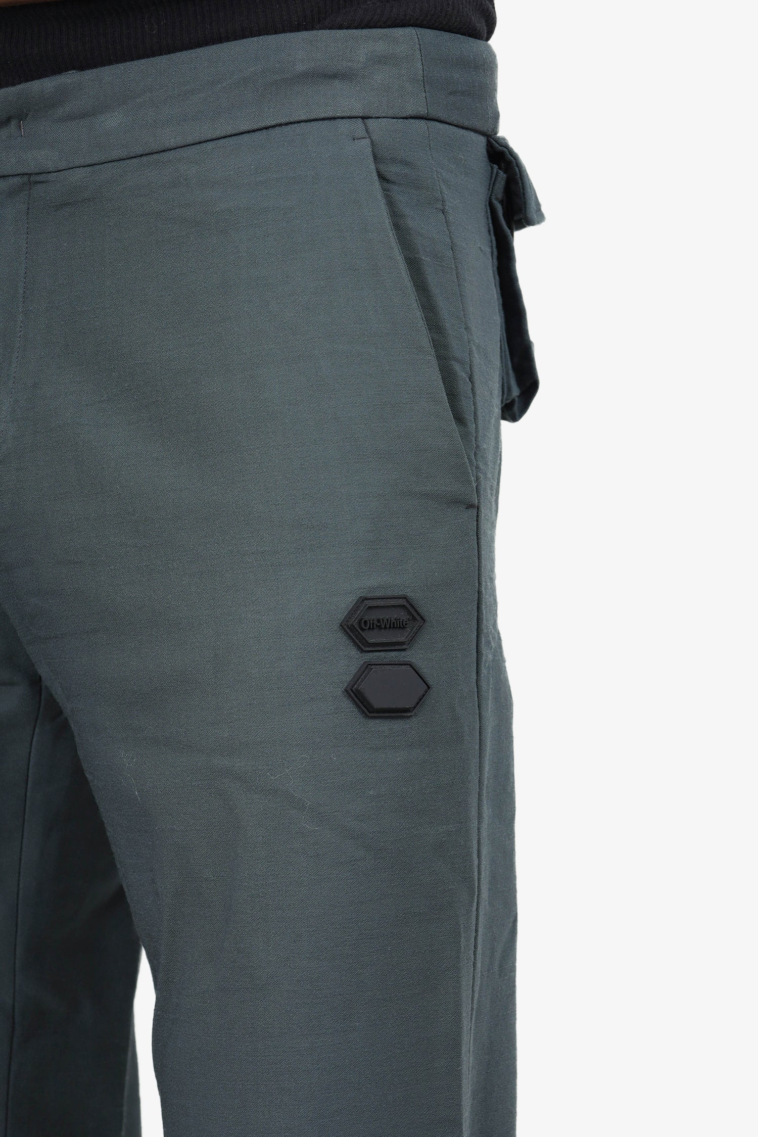 Refresh availabilityOff-White by Virgil FW18 Grey Wool Wide Leg Pants. Hook and zip closure. Side slip pockets. Tonal stitching.