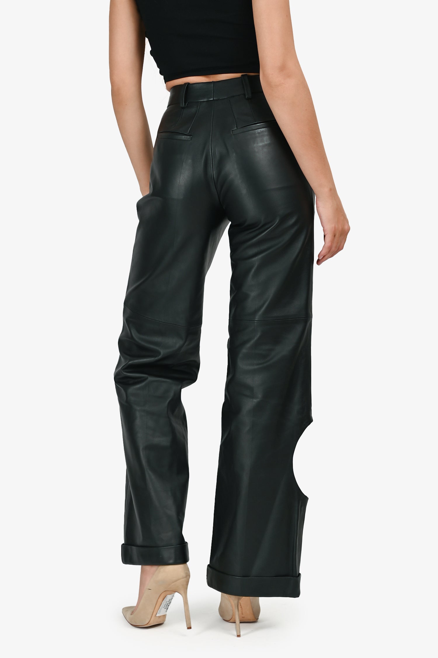 Off-White Black Leather Cut-Out Wide Leg Cuffed Pants Size 38