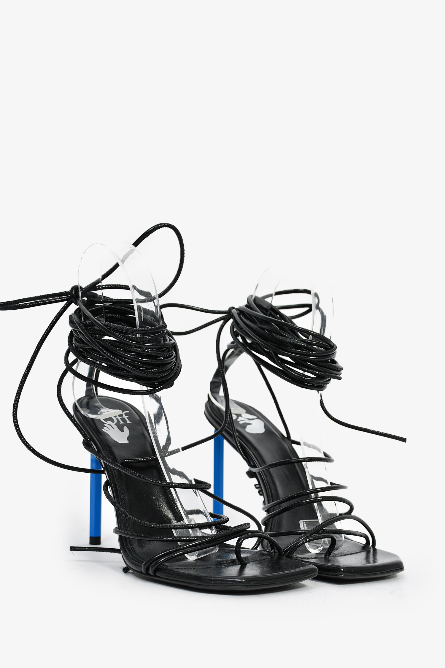 Off-White Black Leather Wrap Cord 'Allen 100' Heeled Sandals Size 36