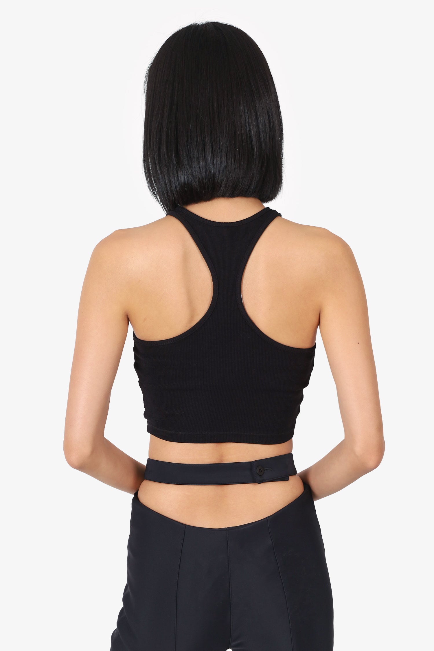 Refresh availabilityOff-White Black Ribbed Logo Print Cropped Tank Top. Pull-on. Round-neckline. Tonal stitching.