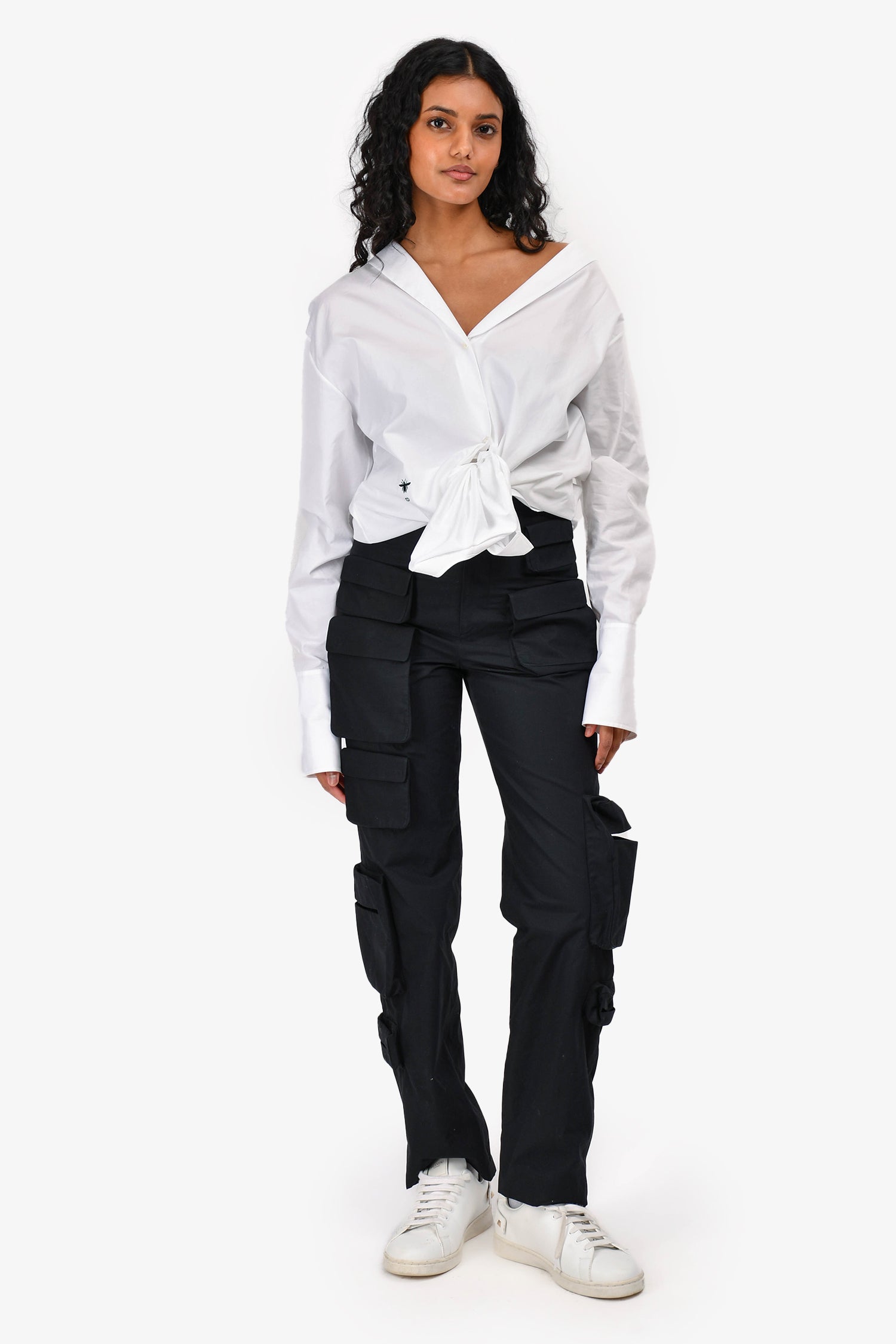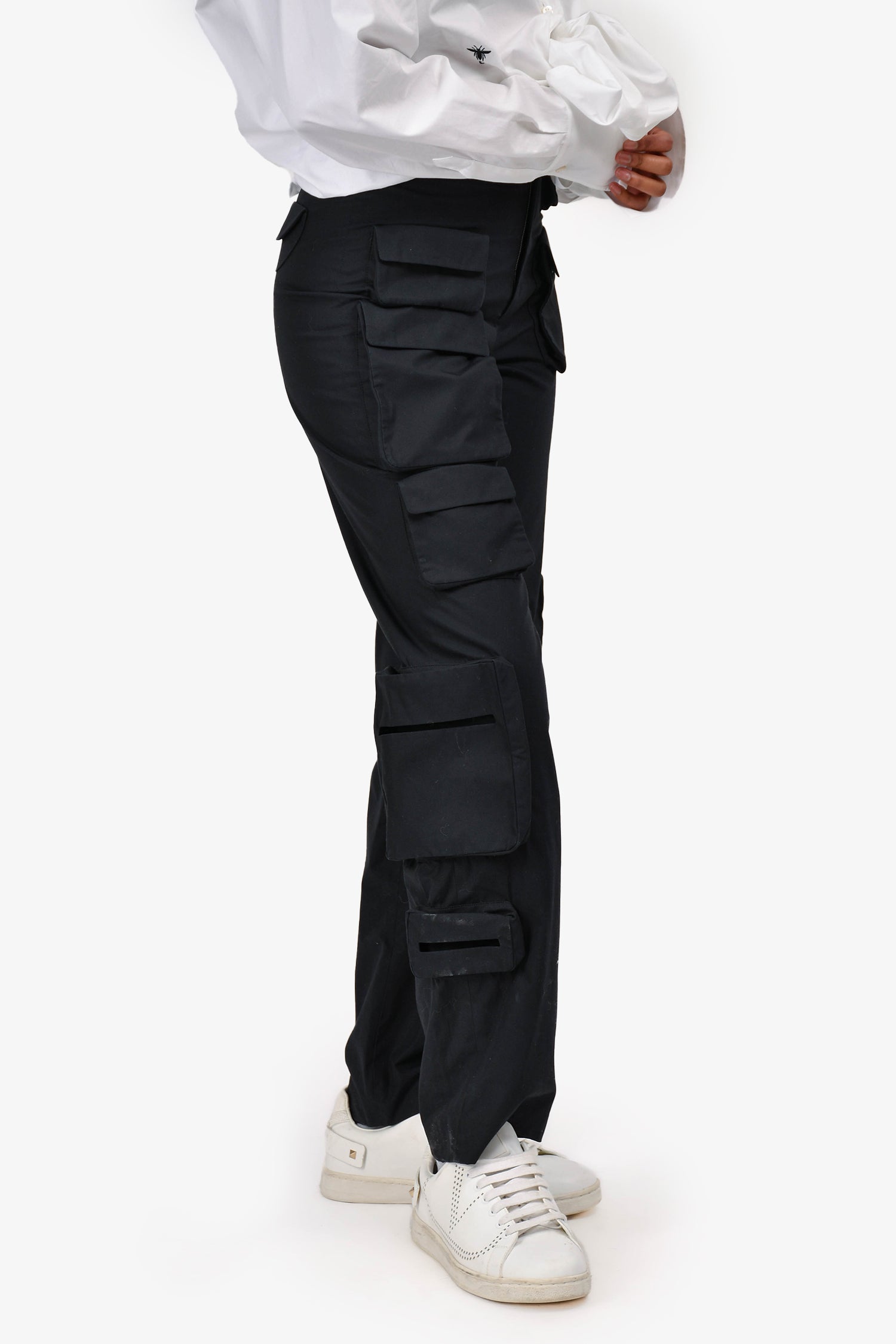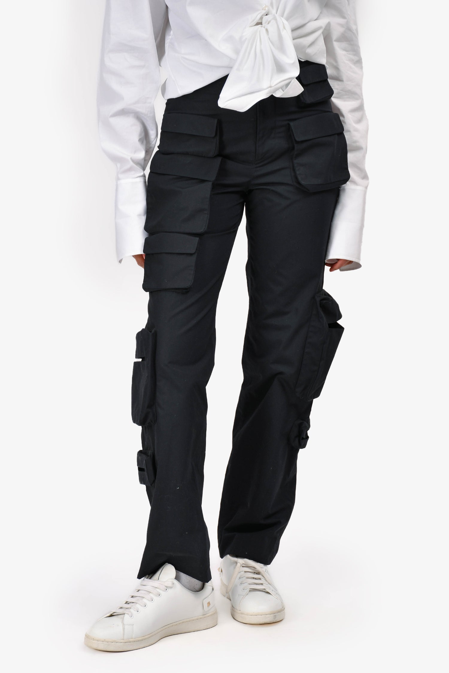 Refresh availabilityOrseund Iris Black Cotton Cargo Pants. Front zip-up closure. 9 front slip pockets and 1 rear slip pocket. Lined. Silver-toned hardware. Tonal stitching.