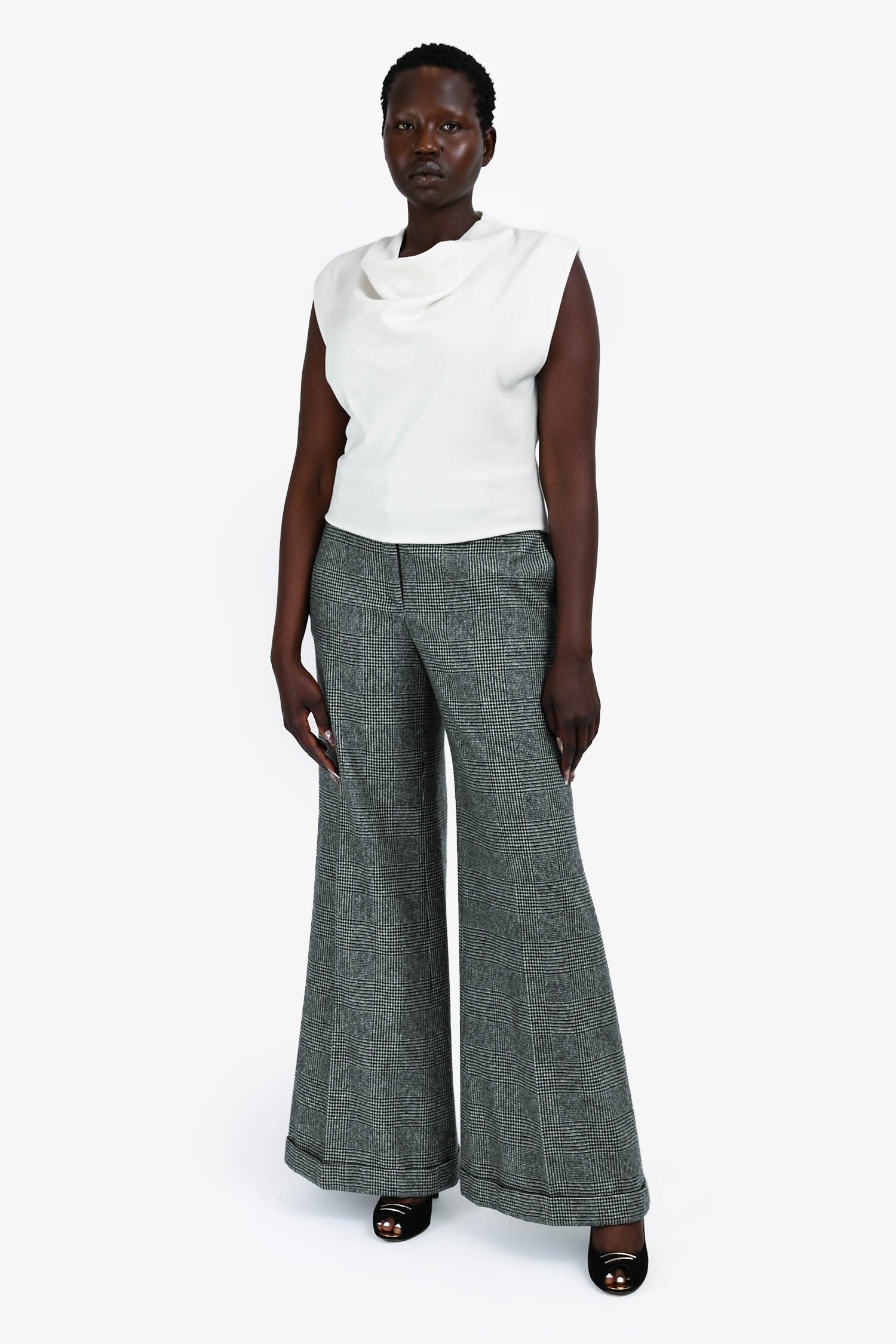 Oscar de la Renta Grey Plaid Wide Leg Trousers Size 12