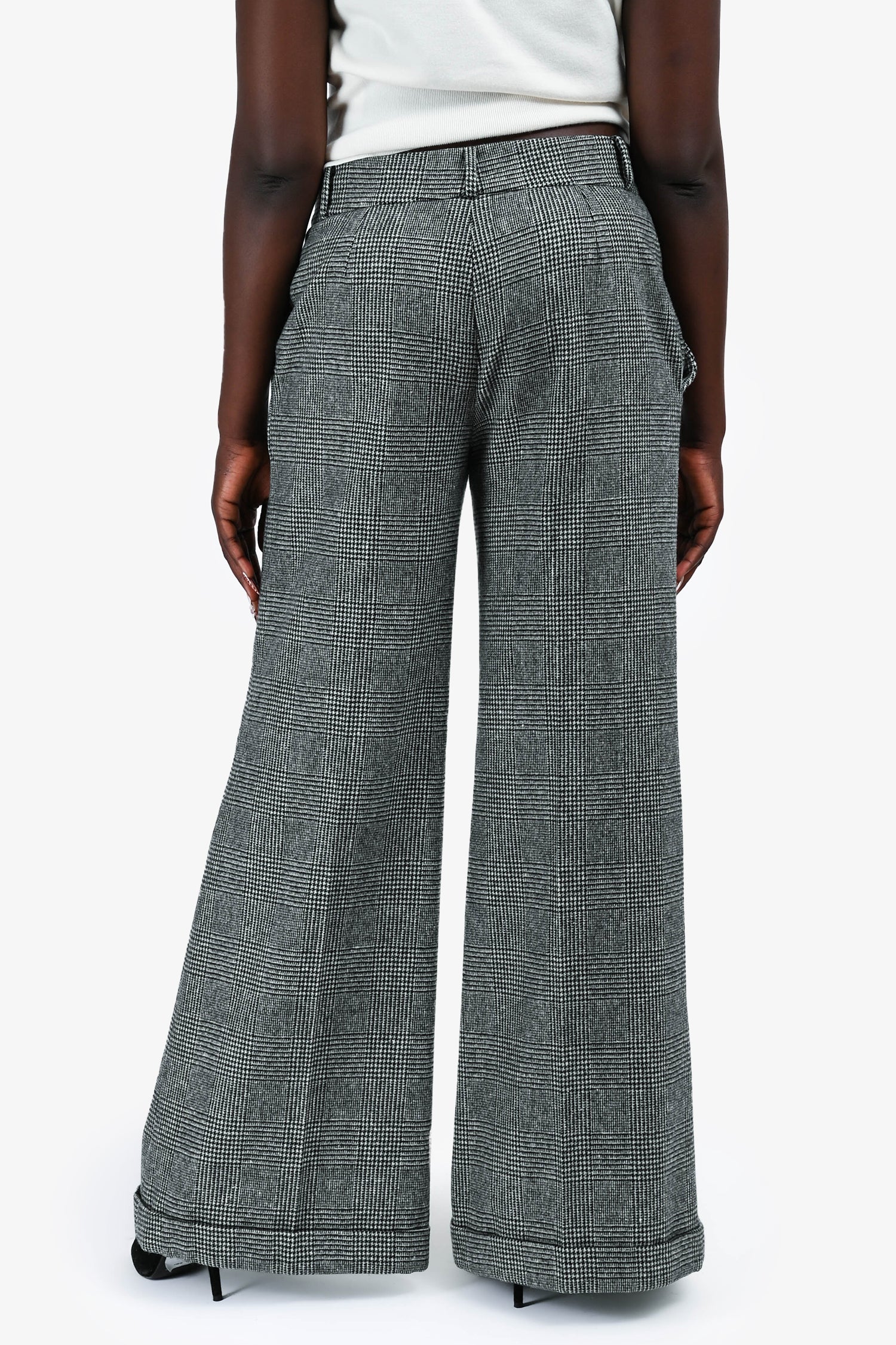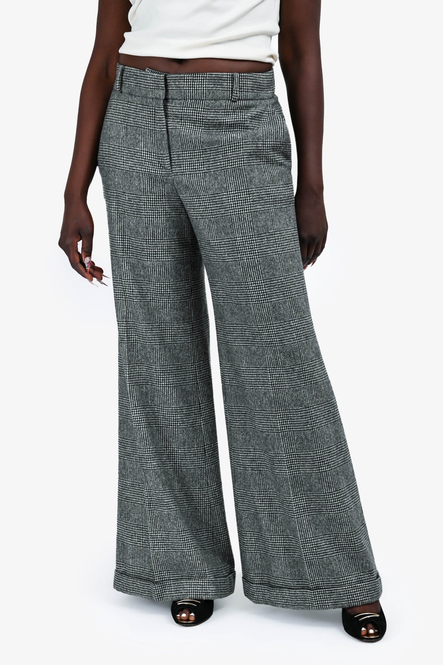 Refresh availabilityOscar de la Renta Grey Plaid Wide Leg Trousers. Zip fly with hook-and-bar closure. Front pleats. Side slit pockets. Wide leg silhouette. Tonal stitching.