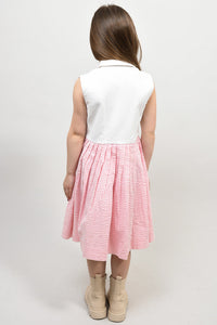 Oscar De La Renta White/Pink Striped Sleeveless Collared Dress Size 8Y Kids