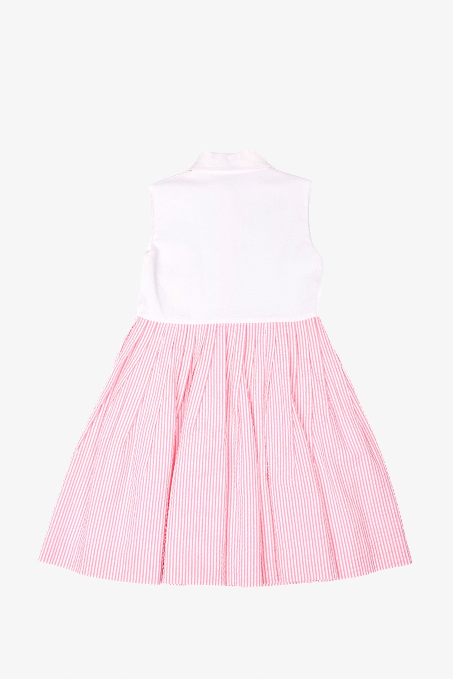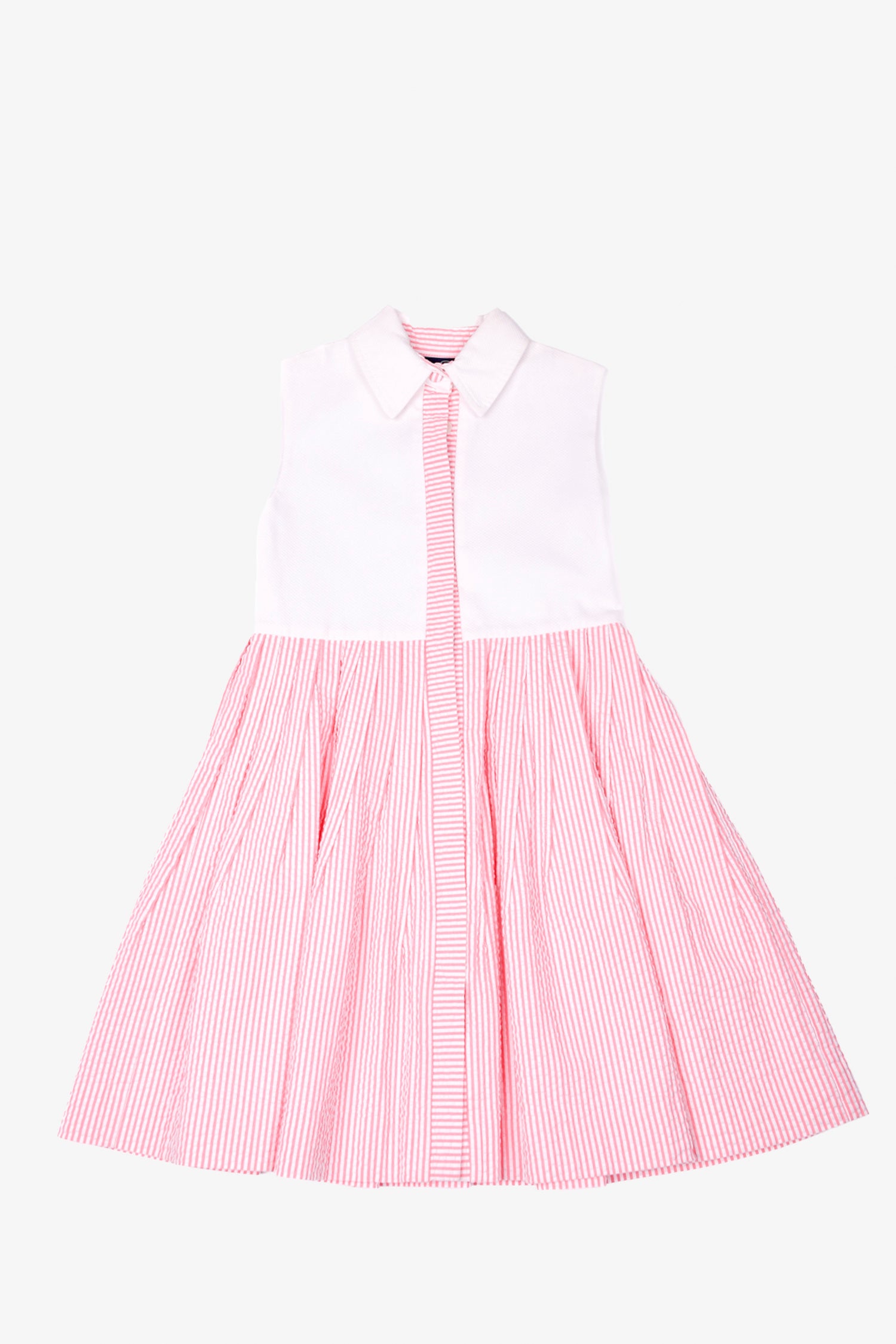 Oscar De La Renta White/Pink Striped Sleeveless Collared Dress Size 8Y Kids