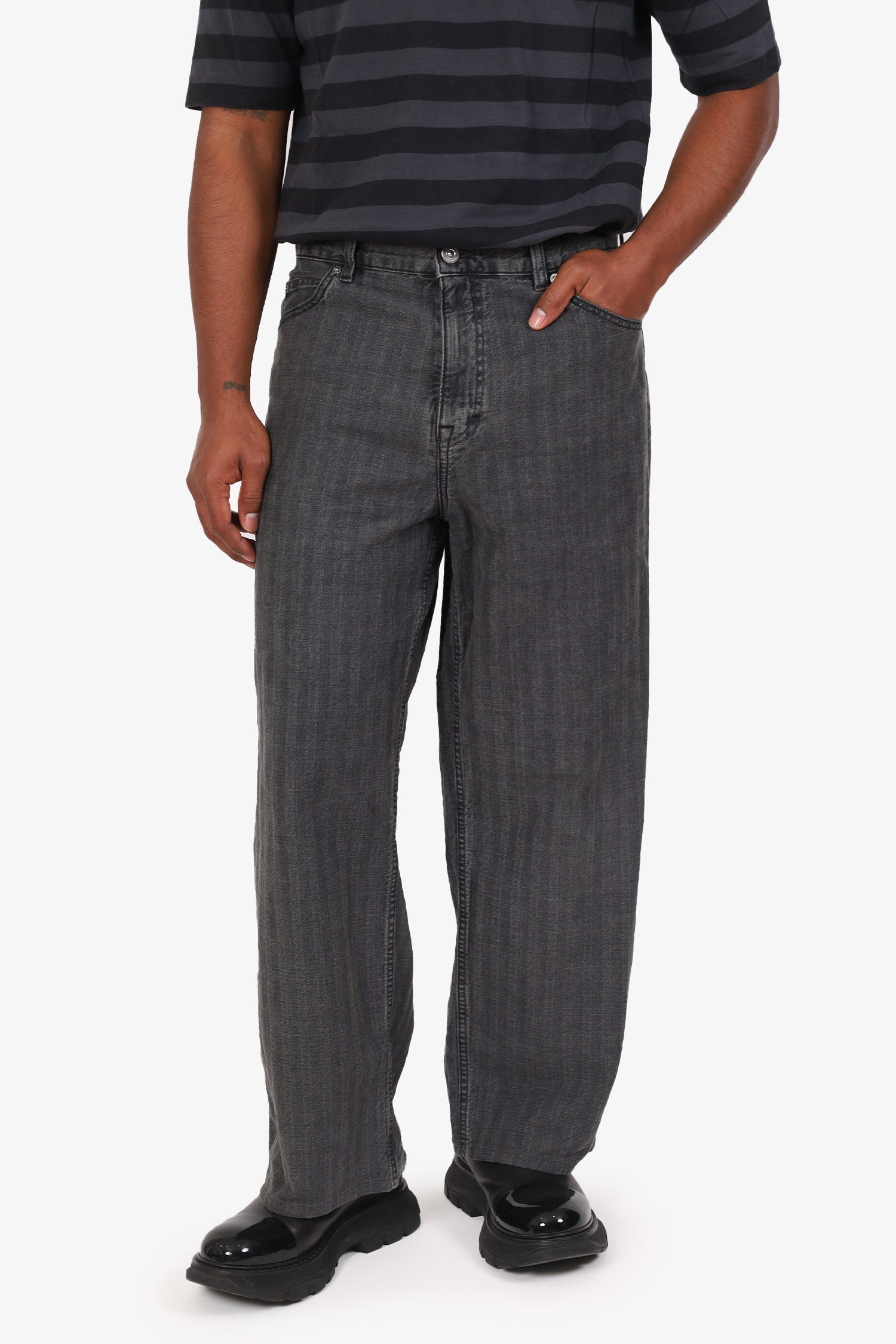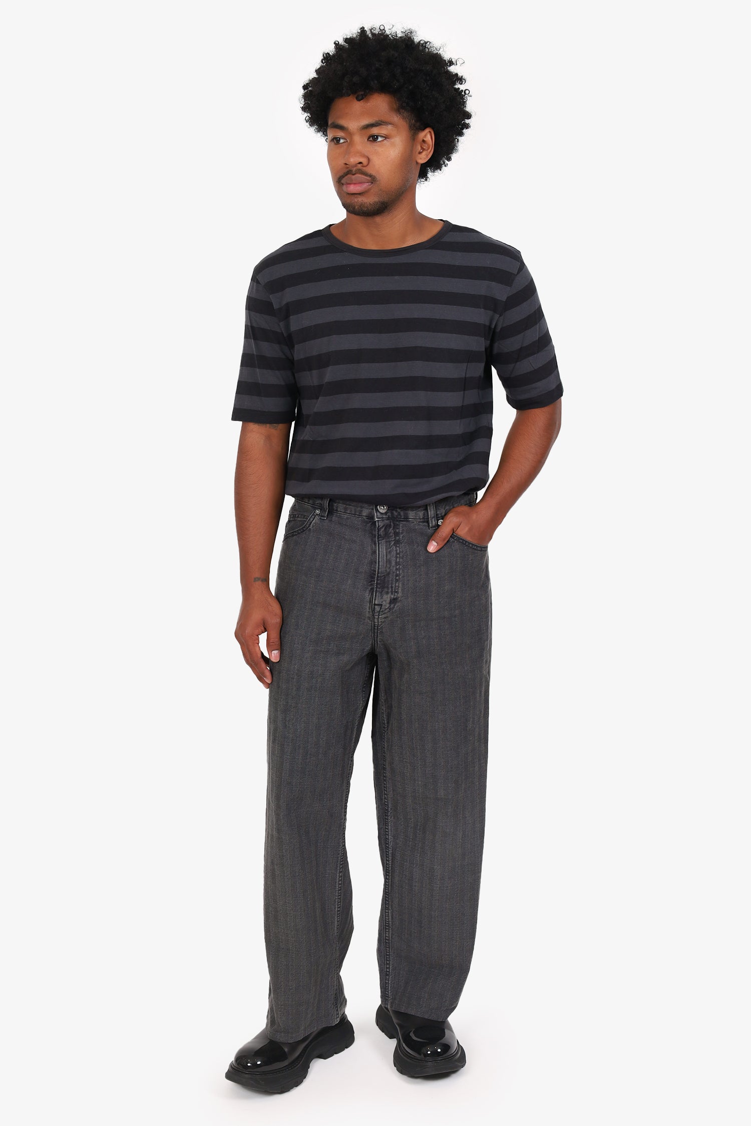 Our Legacy Grey Denim Striped Wide Leg Jeans Size 46 Mens