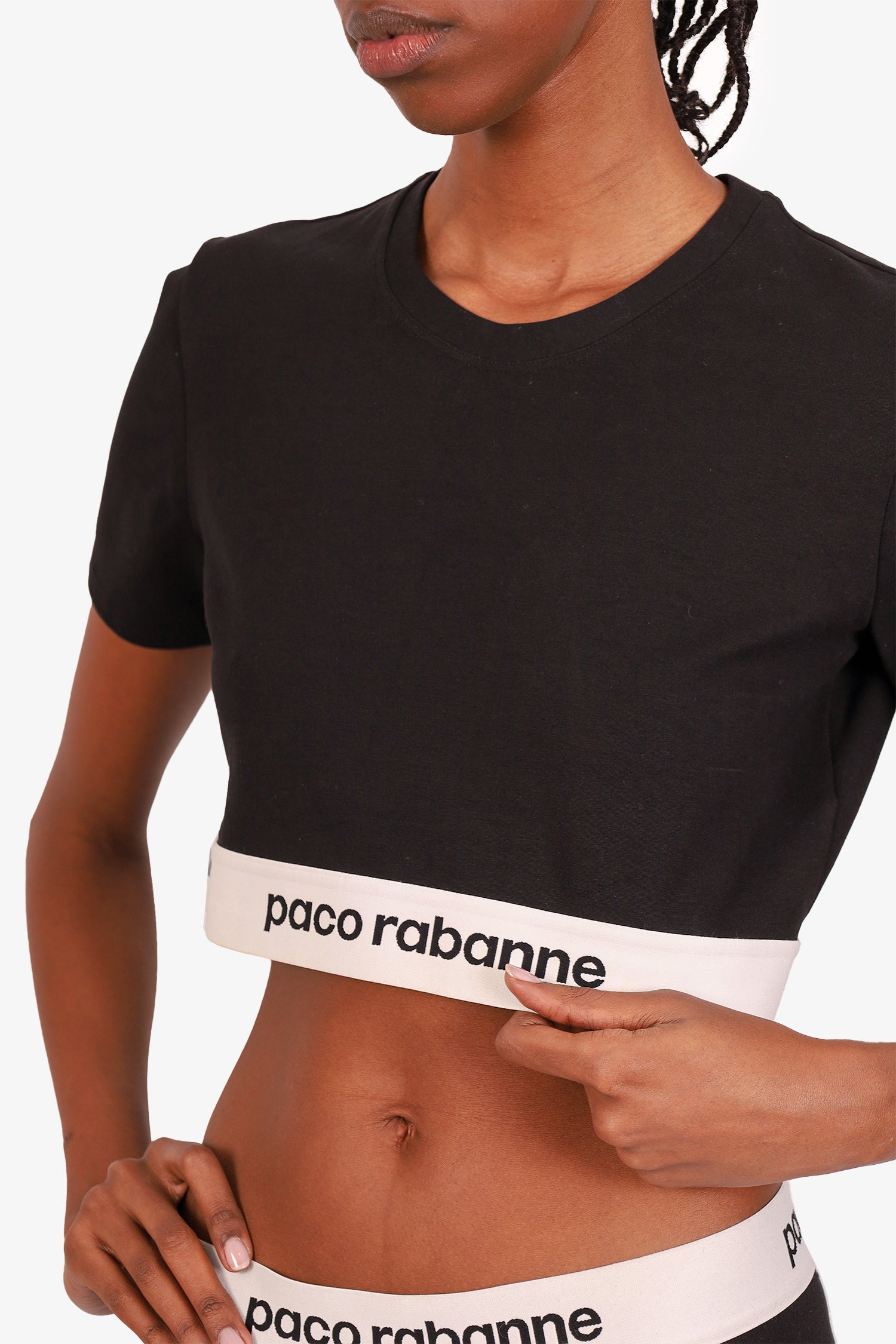 Refresh availabilityPaco Rabbane Black/White Logo Crop T-Shirt. Pull-on. Round neckline. Short-sleeve. Tonal stitching.