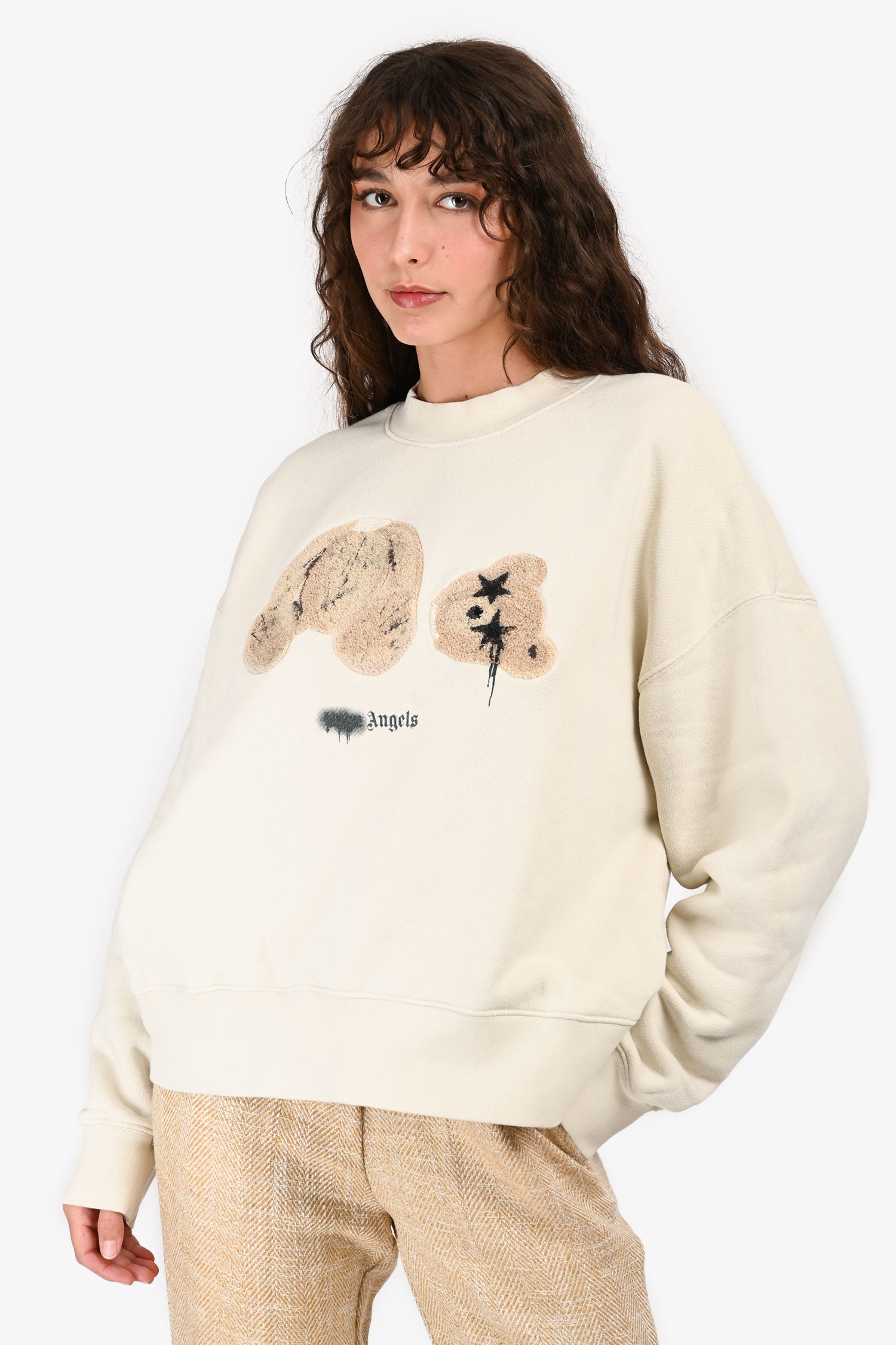 Refresh availabilityPalm Angels White Teddy Bear Crewneck Sweater. Pull-on. Round neckline. Ribbed neck, cuffs, and hemline. Tonal stitching.