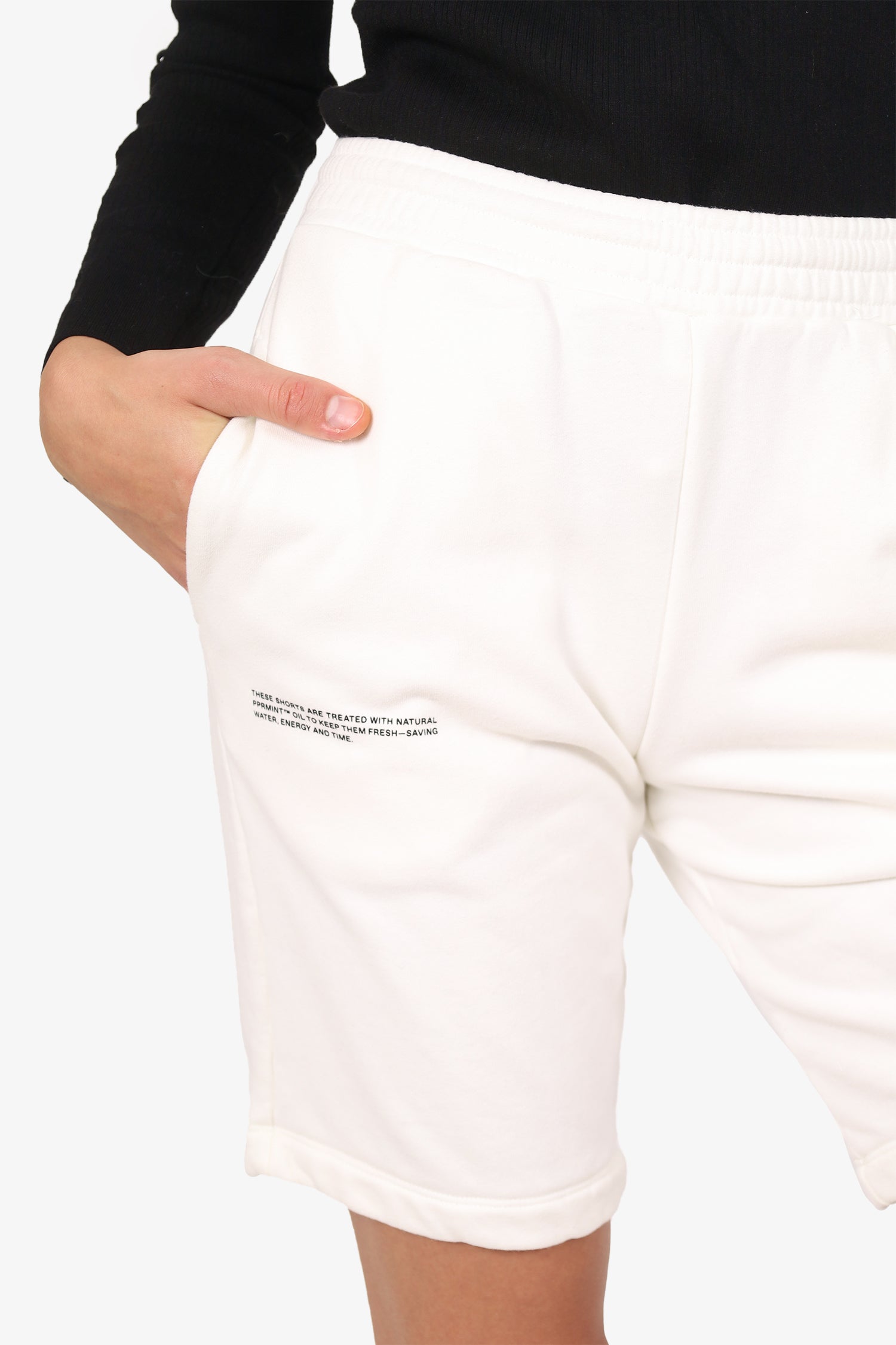 Refresh availabilityPangaia White Long Shorts. Slip on. Elasticated waistband with adjustable drawstring closure. 2 exterior side slip pocket. Printed graphic on front side exterior. Tonal stitching.