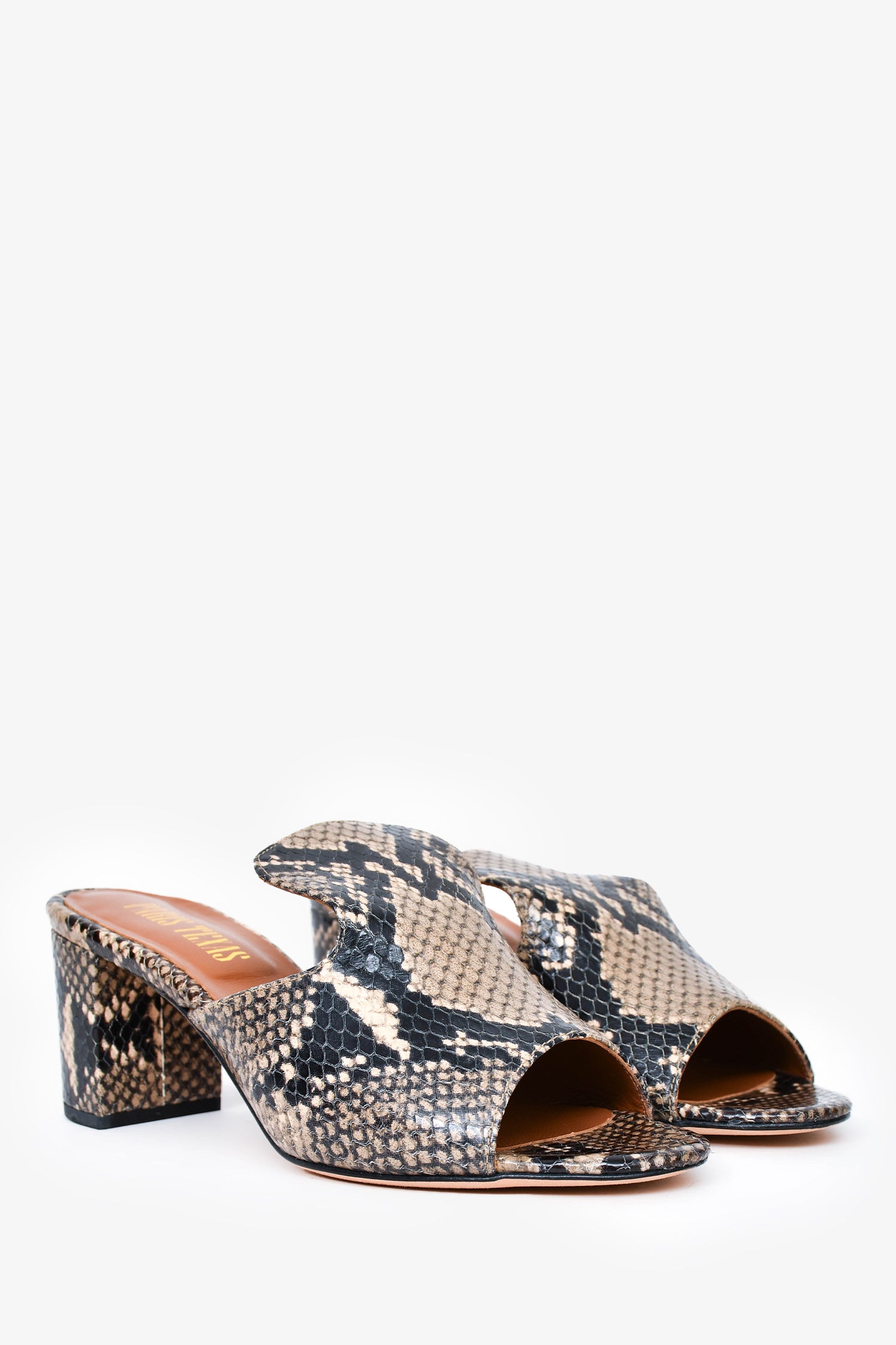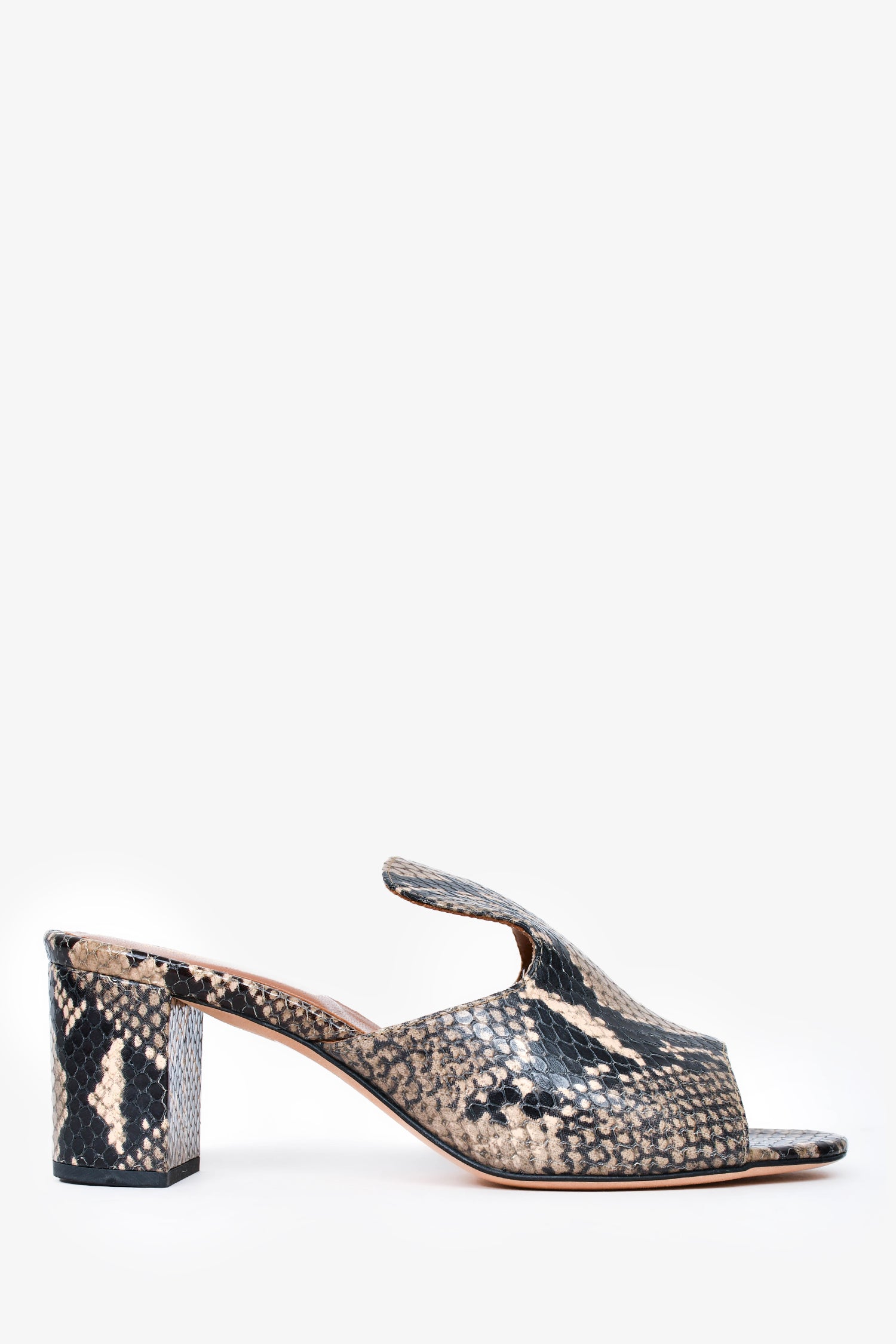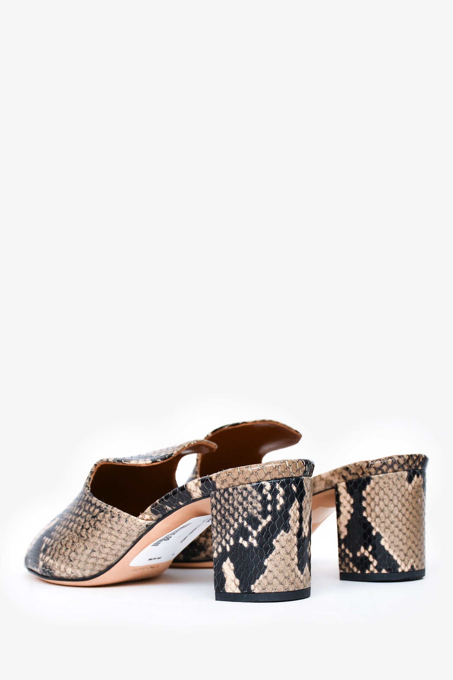 Refresh availabilityParis Texas Grey Snakeskin Leather Mules. Peep-toe. Tonal stitching.