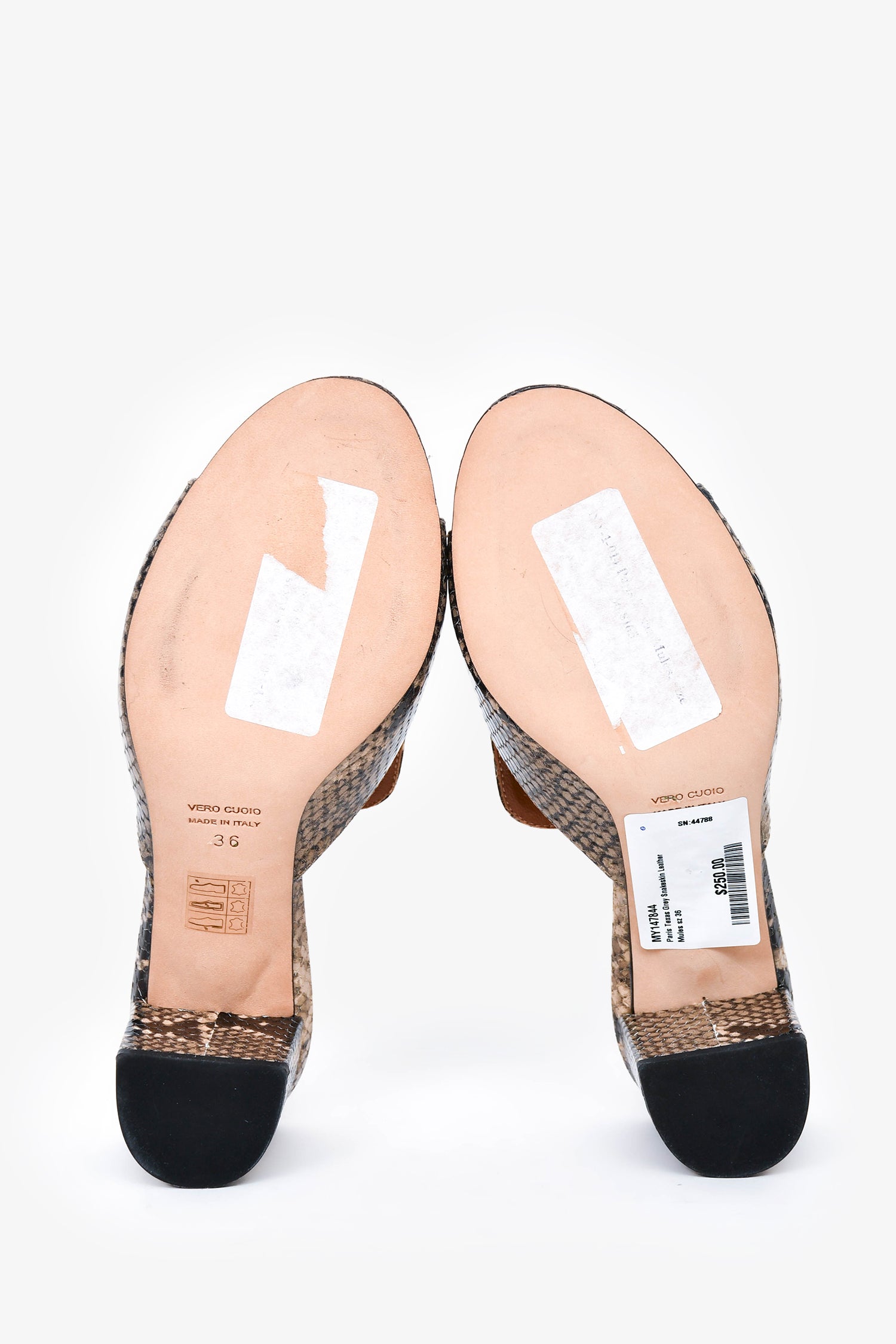 Paris Texas Grey Snakeskin Leather Mules Size 36