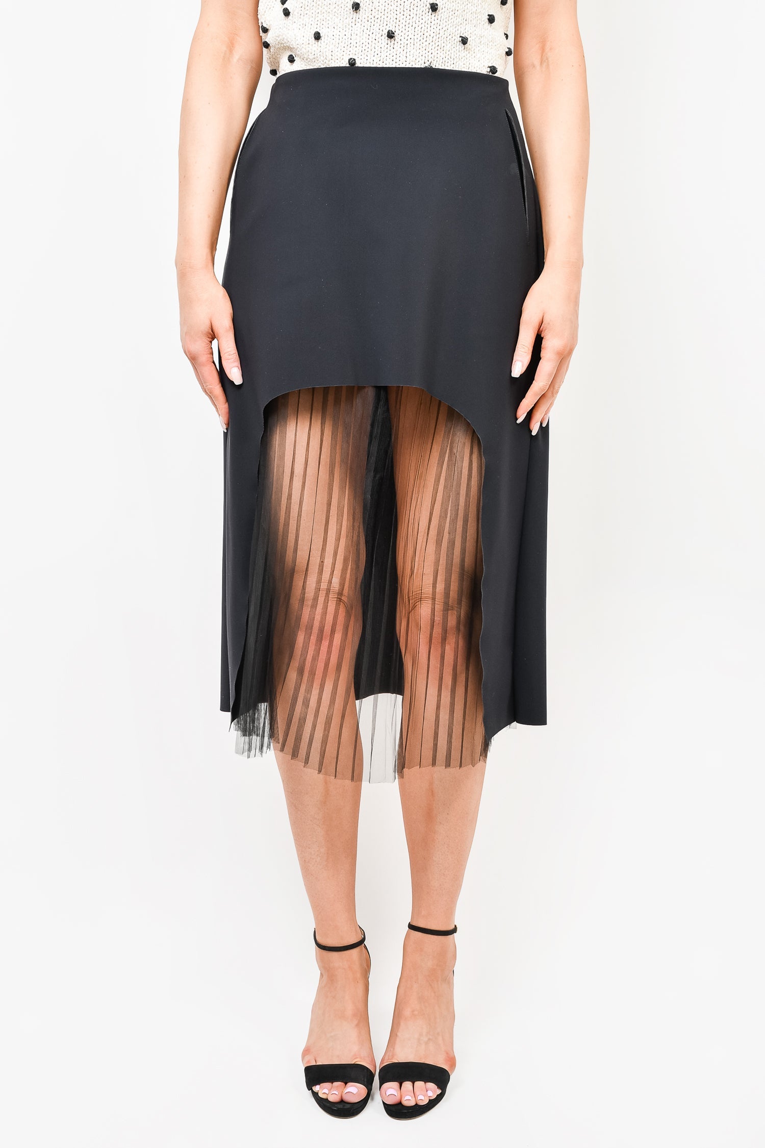 Refresh availabilityPaskal Blue Midi Skirt with Pleated Mesh Detail. Slip pockets at sides. Hidden zip closure at back. Mesh detailing at front. Tonal stitching.