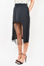 Paskal Blue Midi Skirt with Pleated Mesh Detail Size S