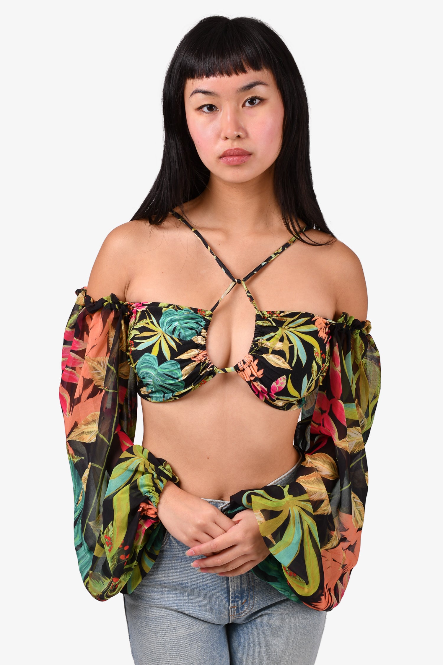 PatBO Black Tropicalia Stretch Beach Top Size L