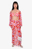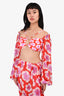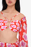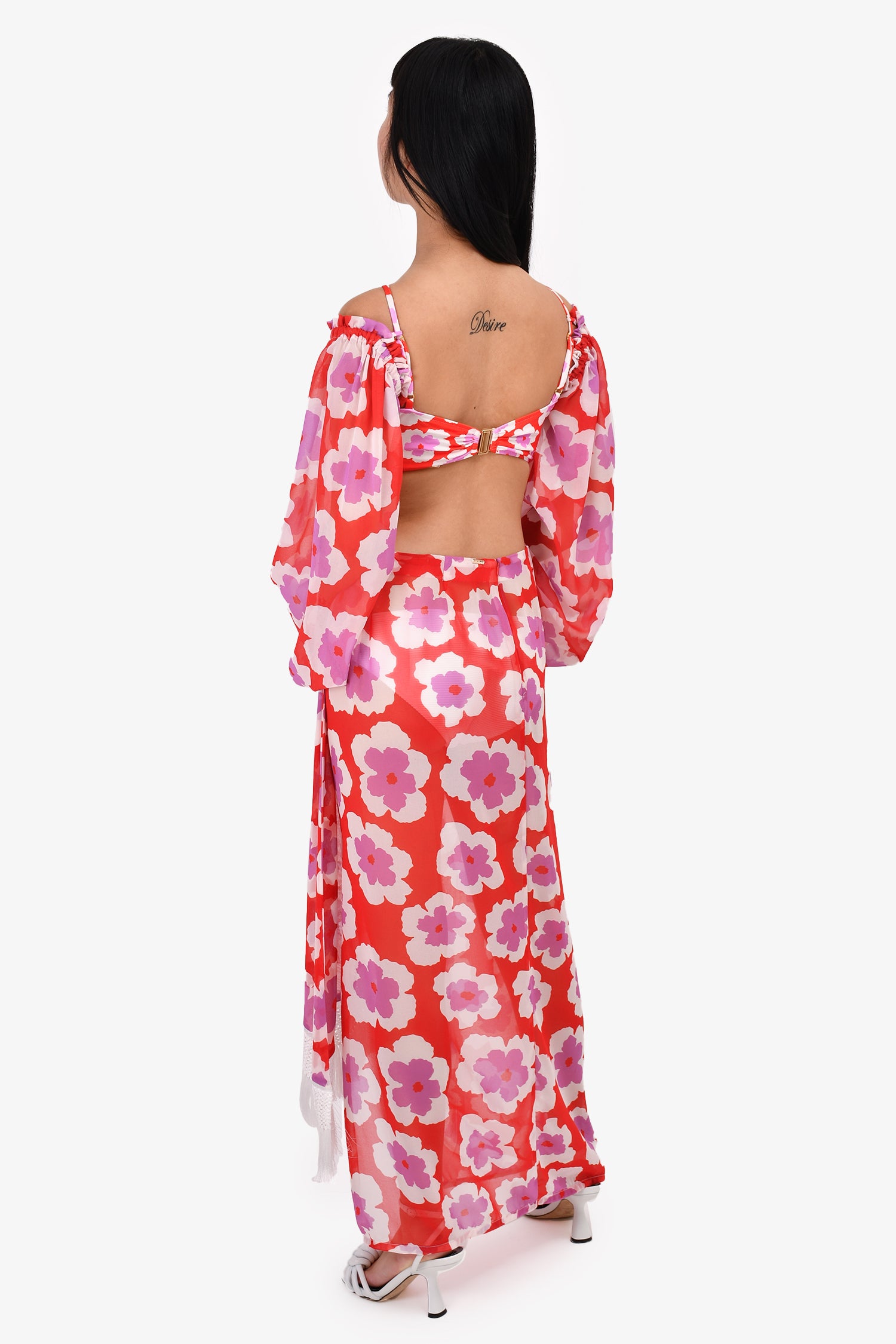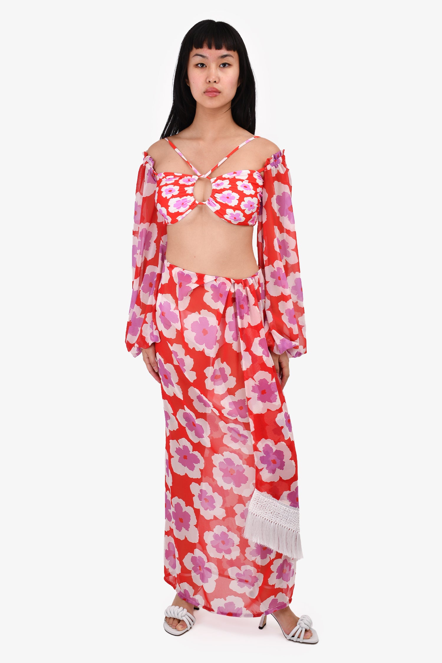 PatBO Cherry Windflower Tie-Front Cropped Top + Fringe Skirt Set Size M