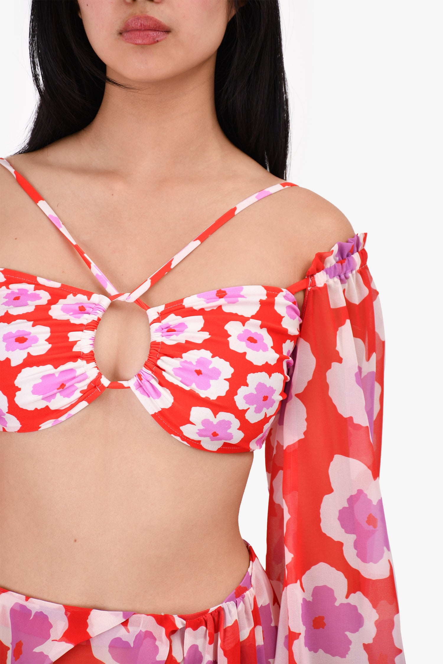 Refresh availabilityPatBO Cherry Windflower Tie-Front Cropped Top. Long-sleeved. Rear zip closure. Tonal stitching.