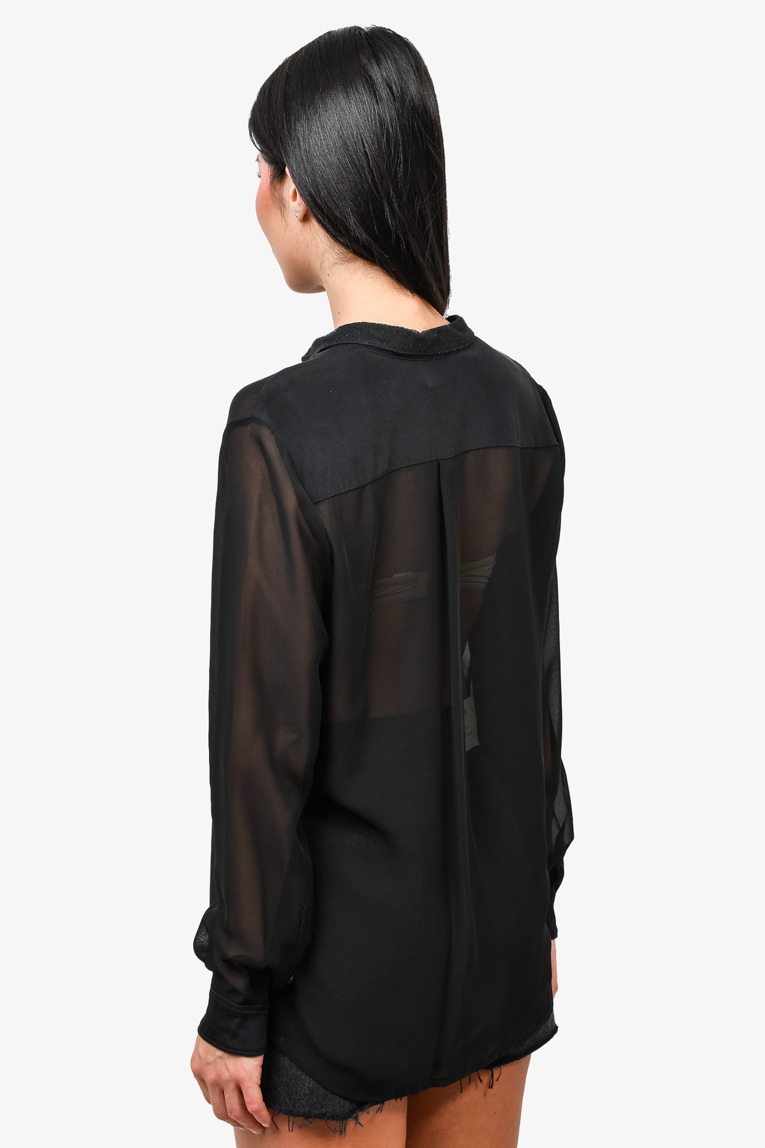 Paul Smith Black Ruffled Sheer Blouse Size 42