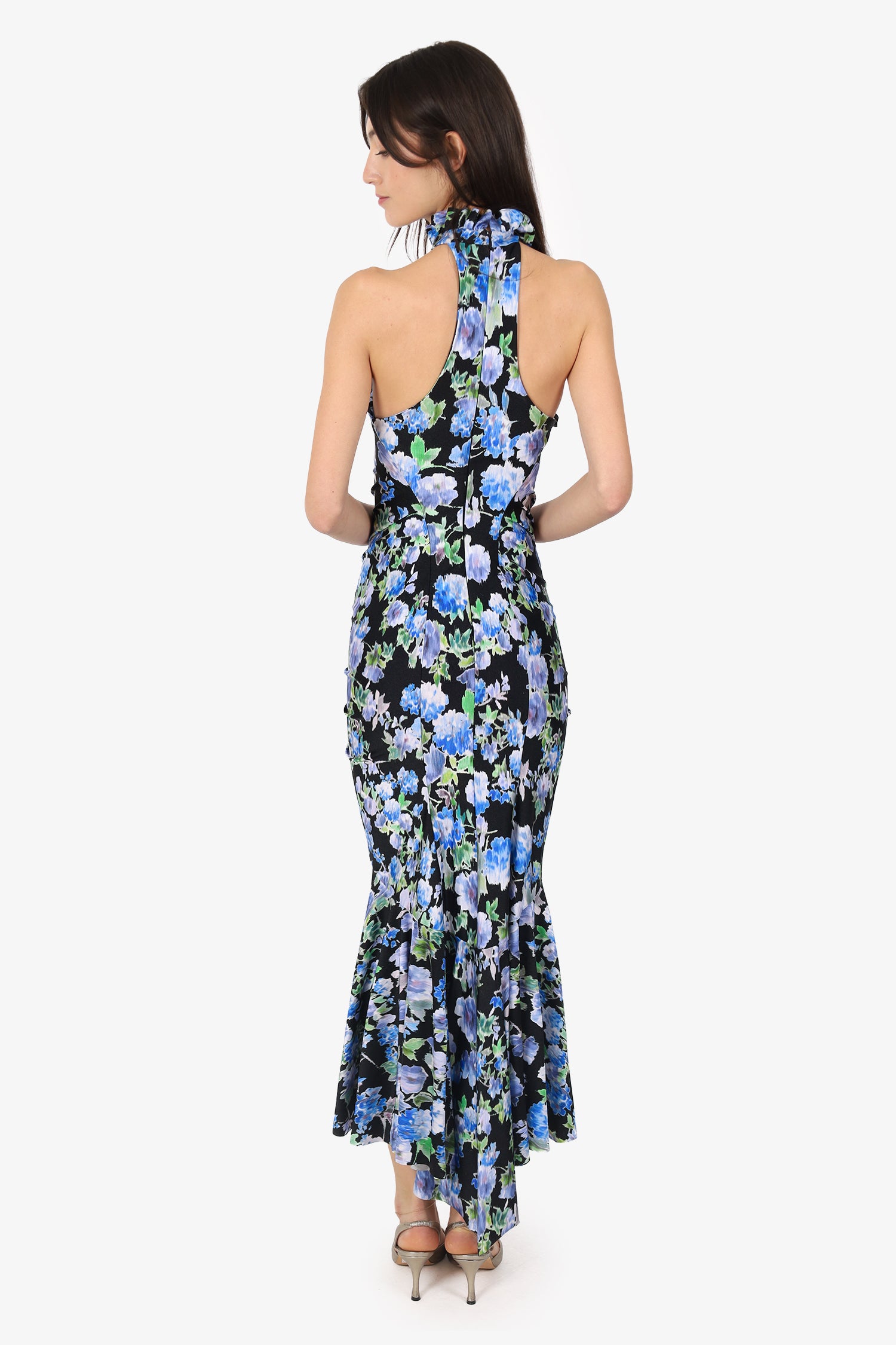 Refresh availabilityPhilosophy Di Lorenzo Serafini Black/Green Floral Print Ruched Halter neck. Slip-on. Rear zip with hook-up closure. Removable flower brooch with rear push-pin closure. Silver-tone hardware. Tonal stitching.