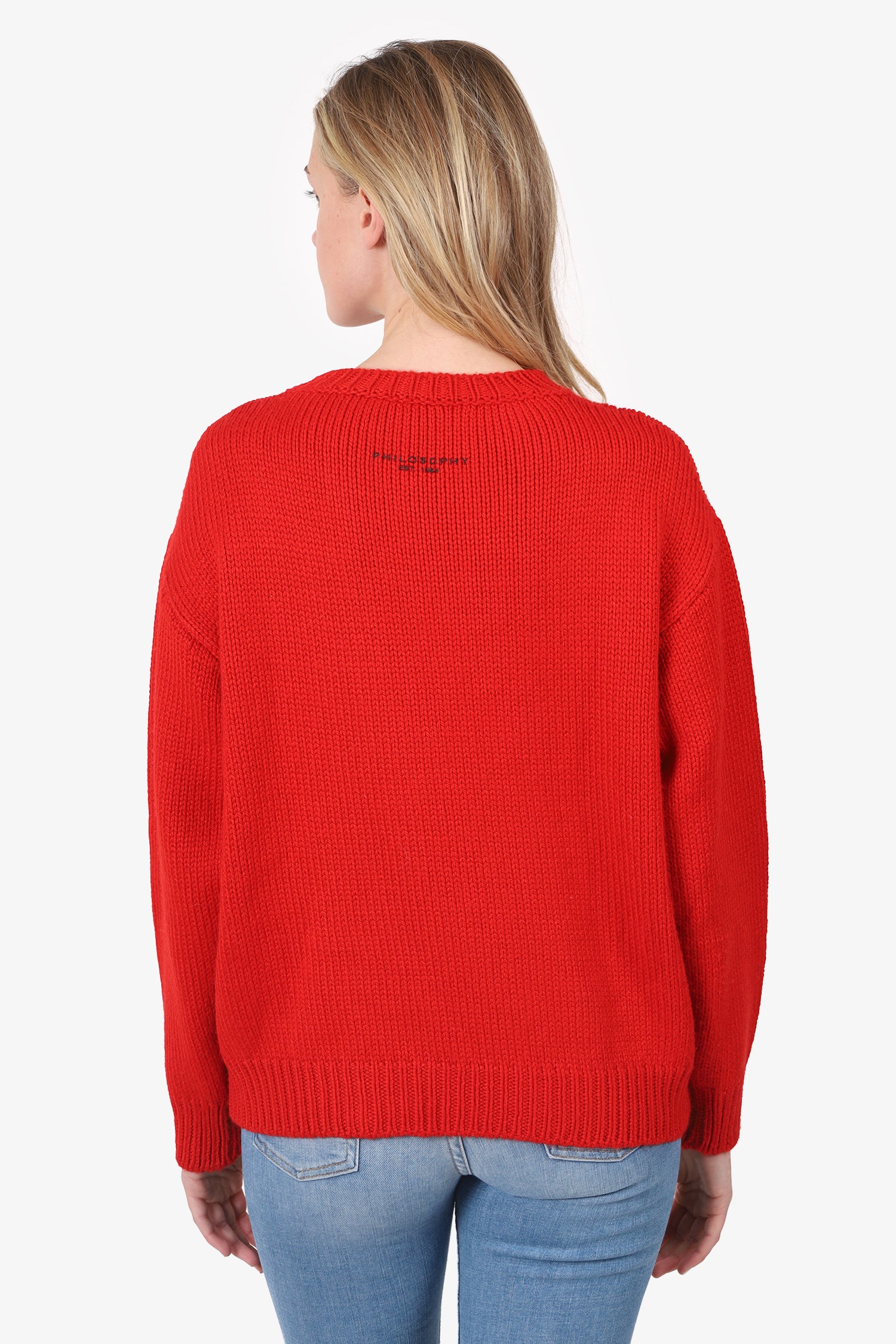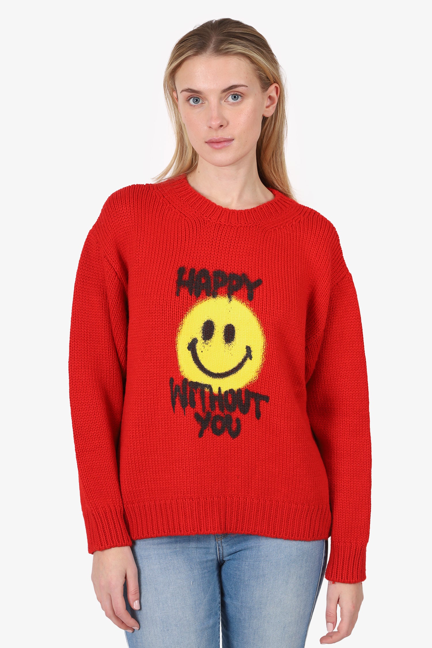 Refresh availabilityPhilosophy x Smiley Red/Yellow Smiley Face 'Happy Without You' Sweater. Pull-on. Round neckline. Tonal stitching.