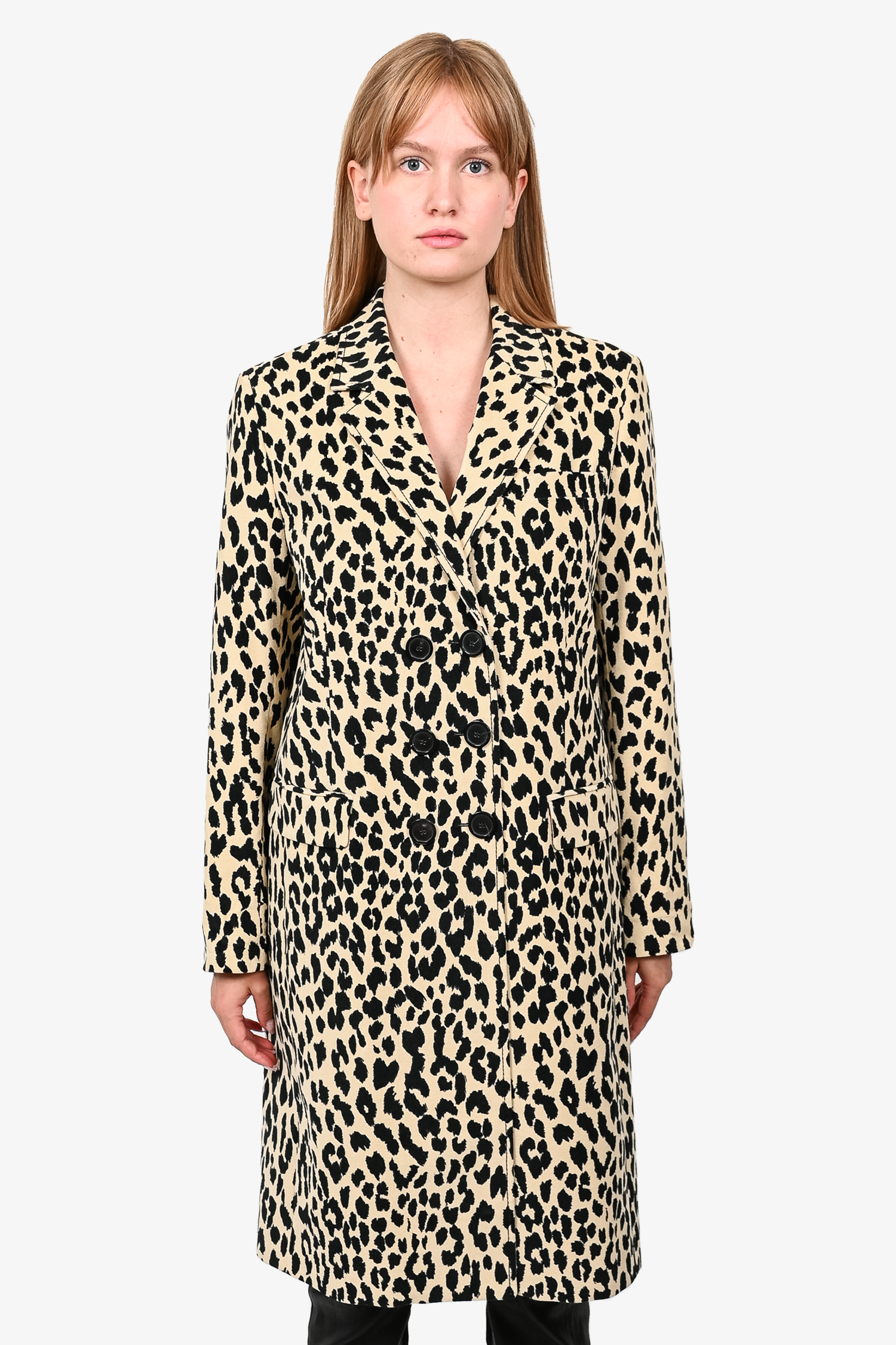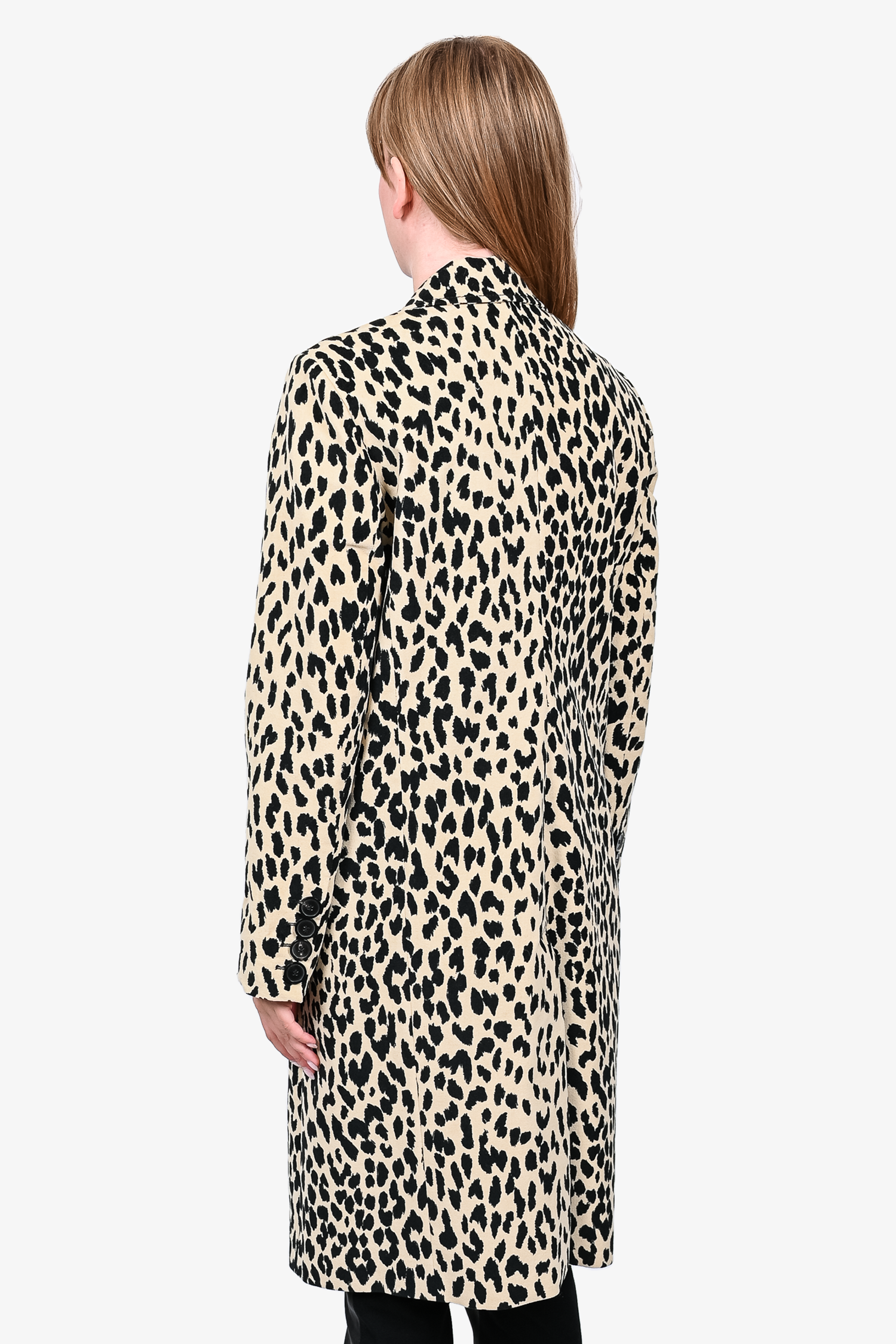 Refresh availabilityPiazza Sempione Beige/Black Leopard Printed Coat. Notch lapels. Two large slip front pockets and one small front slip pocket. Button details on sleeve. Single breasted button closure. Tonal stitching.