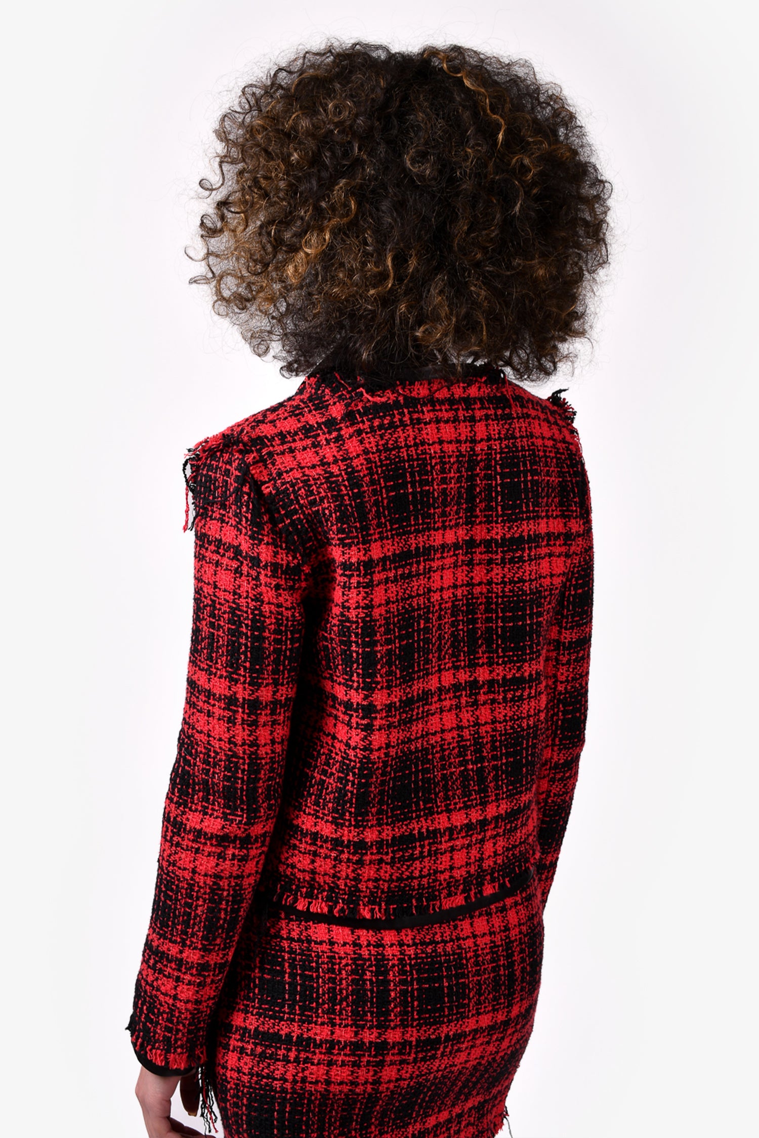 Pinko Black/Red Tweed Checkered Blazer + Mini Skirt Set Size 38