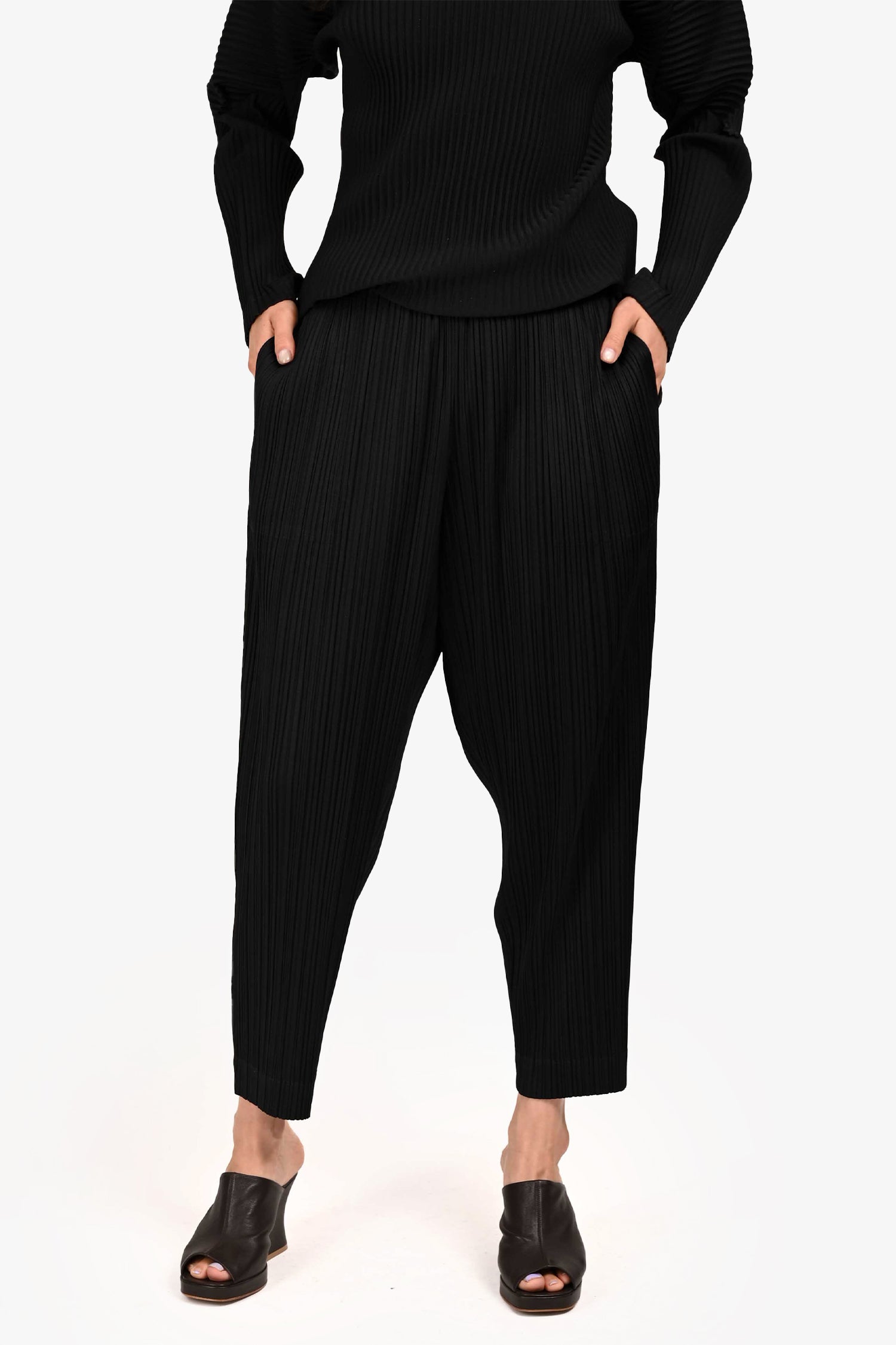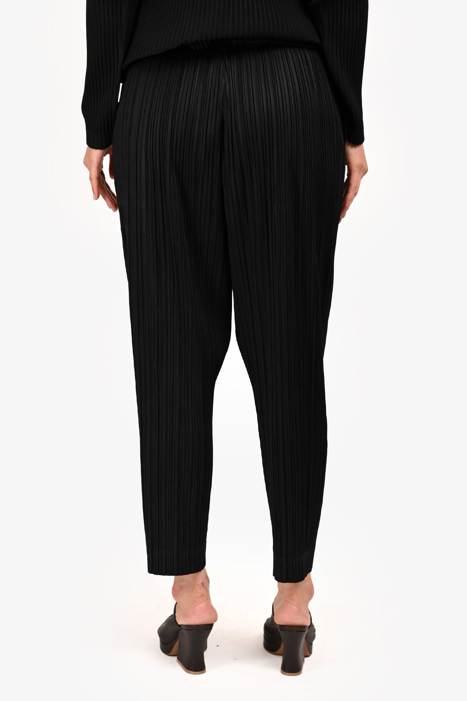 Refresh availabilityPleats Please Black Pleated Pants. Two side pockets. Elasticized waistband. Tonal stitching.