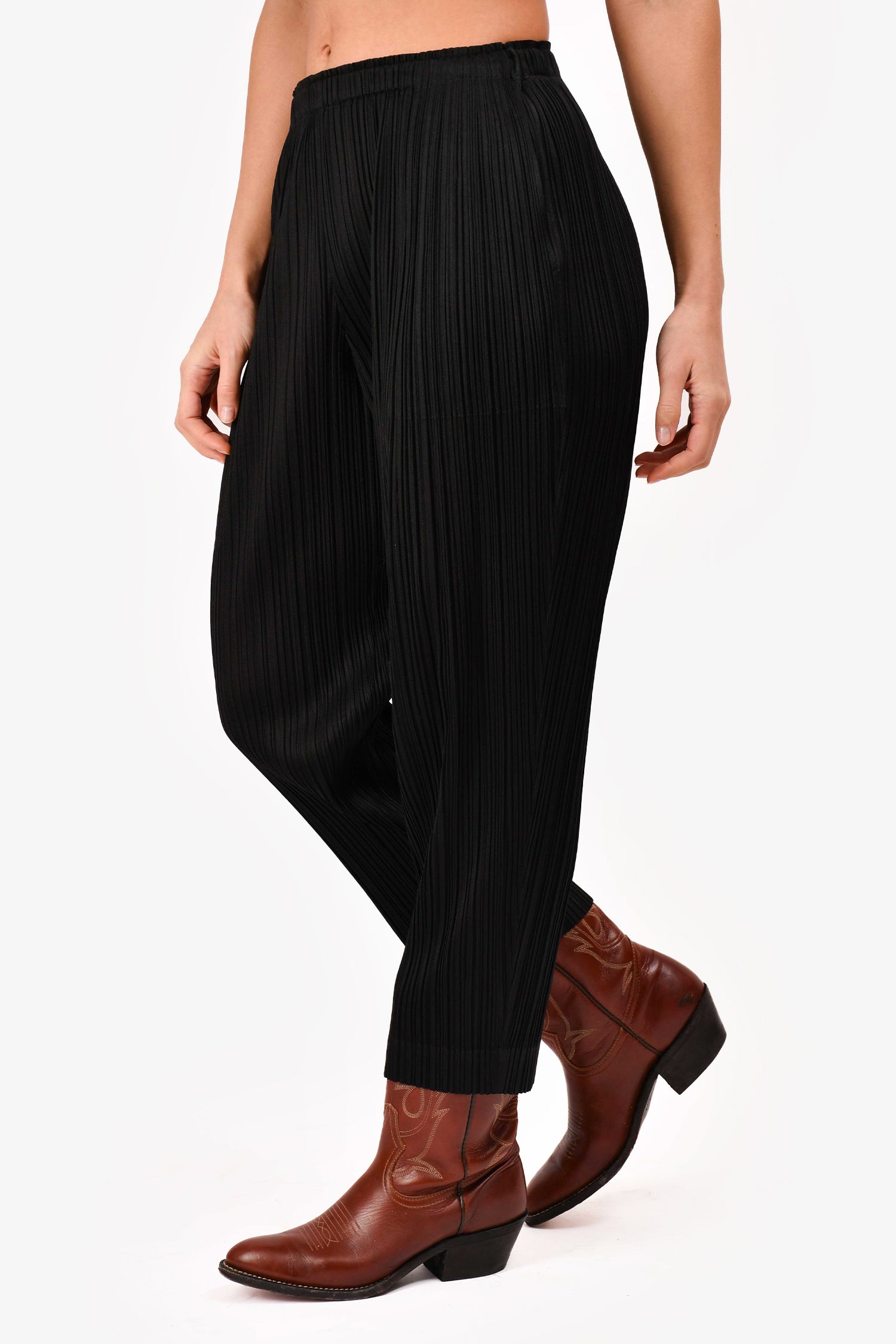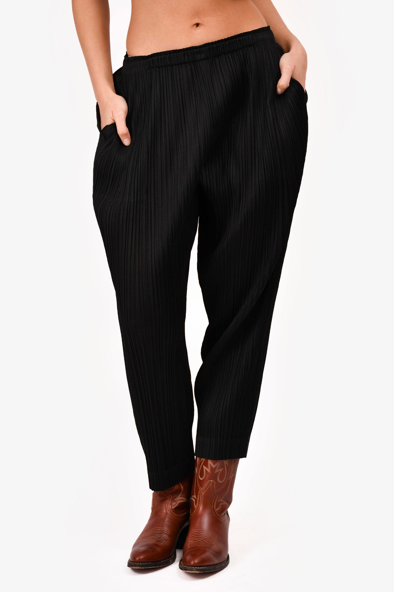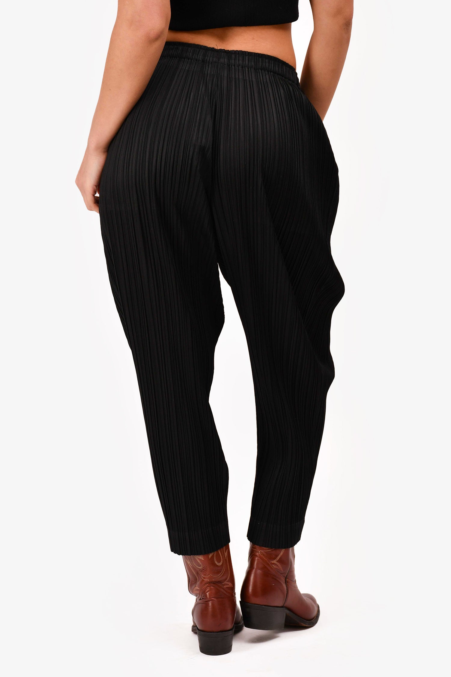 Refresh availabilityPleats Please Black Pleated Pants. Elasticized waistband. 2 side slip pockets. Unlined. Tonal stitching.