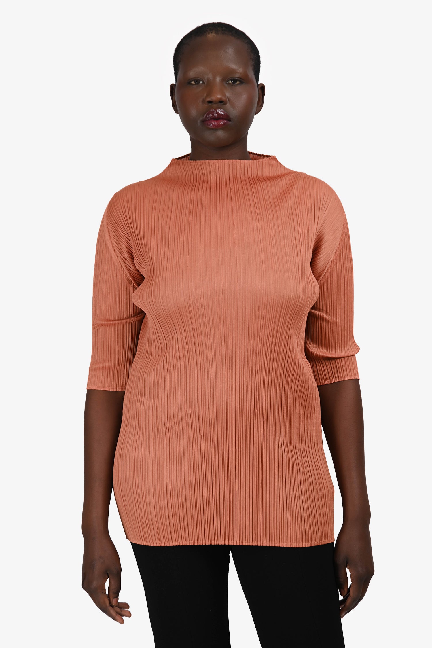 Refresh availabilityPleats Please Orange Pleated Mock Neck Top. Slip-on. Mock neckline. Tonal stitching.