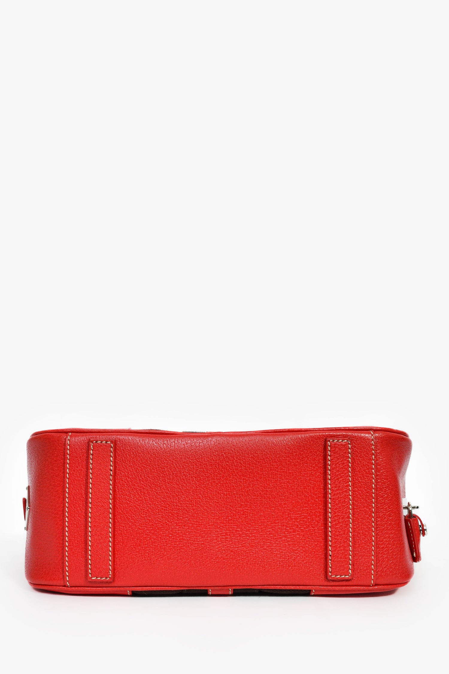 Refresh availabilityPrada 2005 Red/Brown Leather Canvas 'Bowling' Top Handle Bag. Dual handle. Top zipper closure. Single interior compartment with a wall zip pocket. Silver-tone hardware. Tonal stitching.
